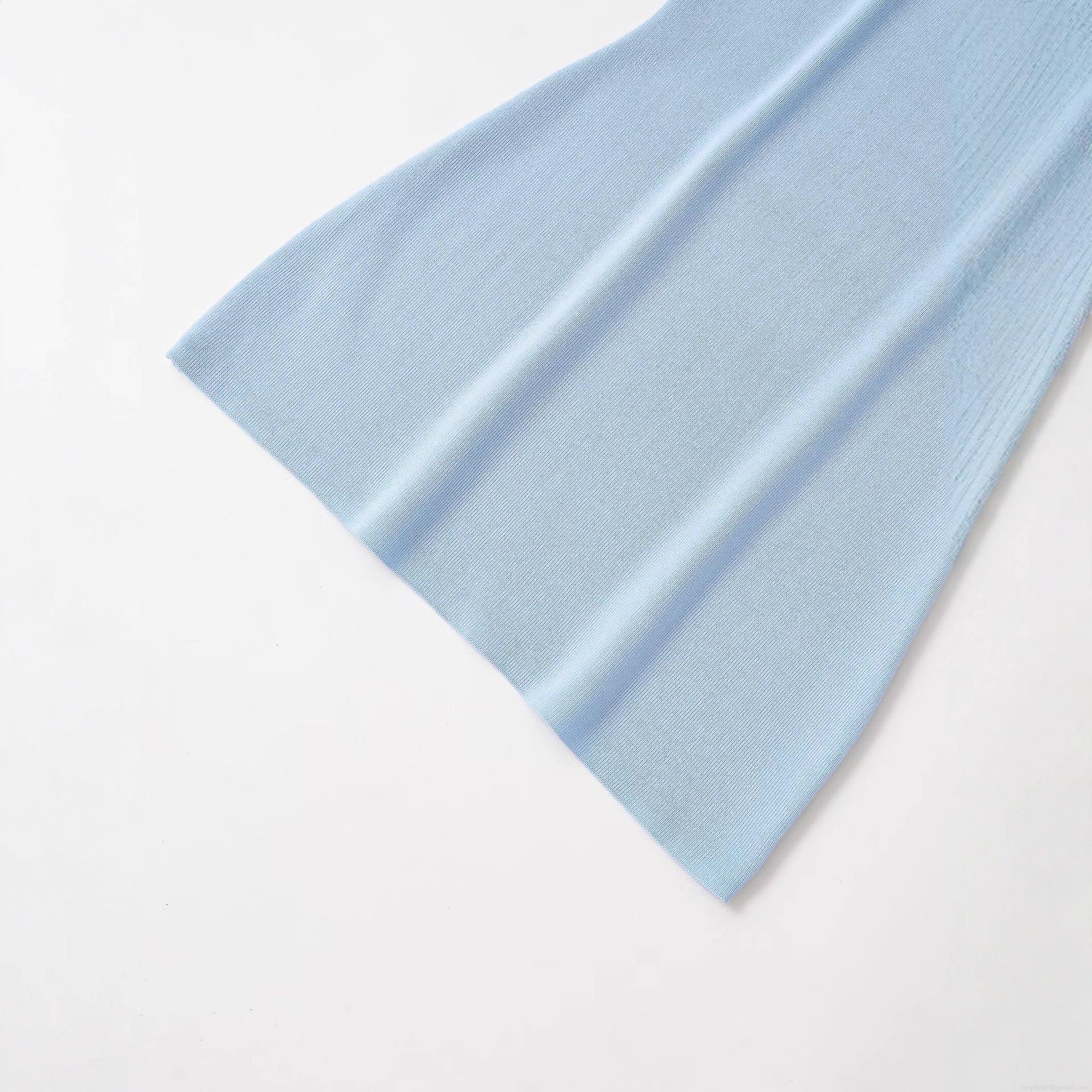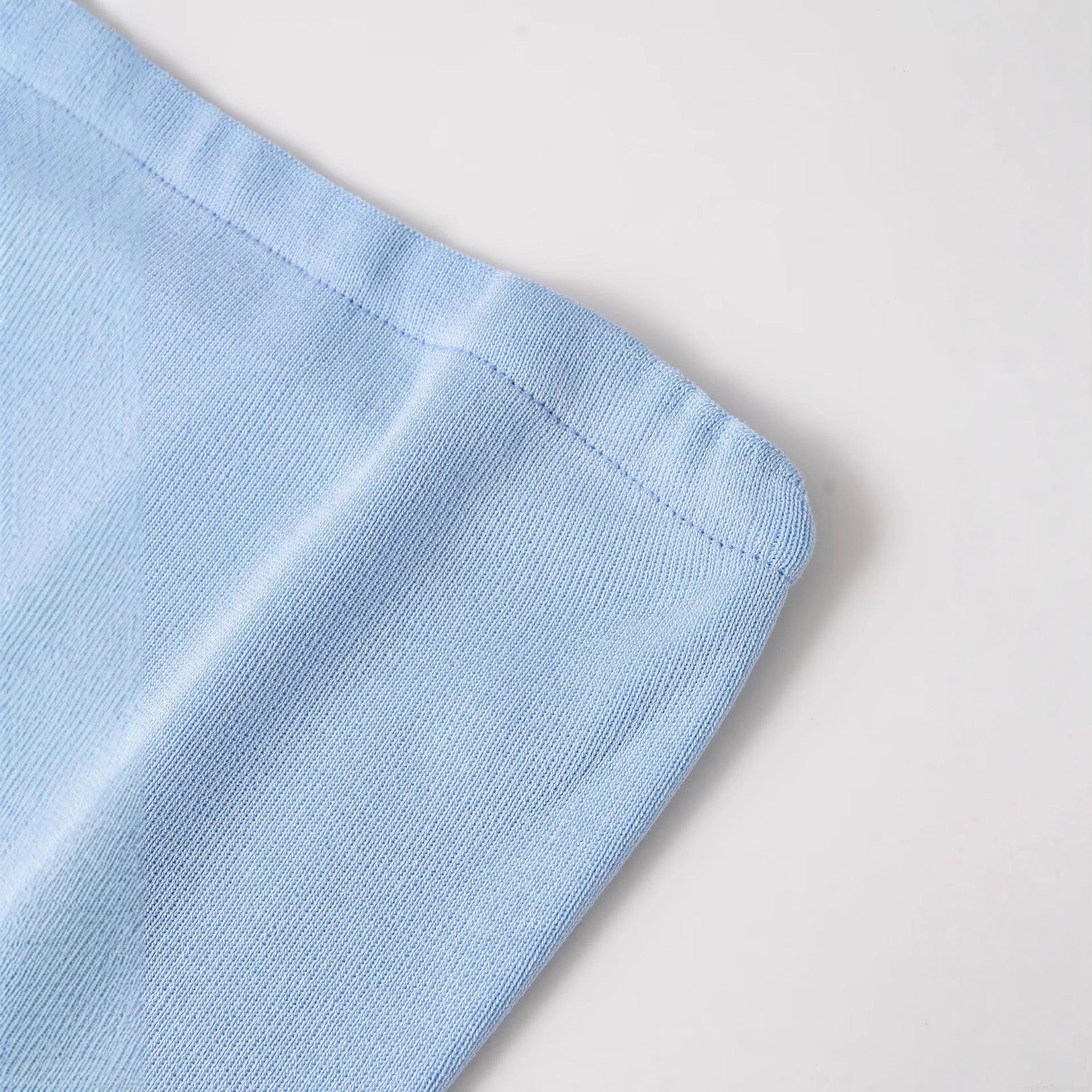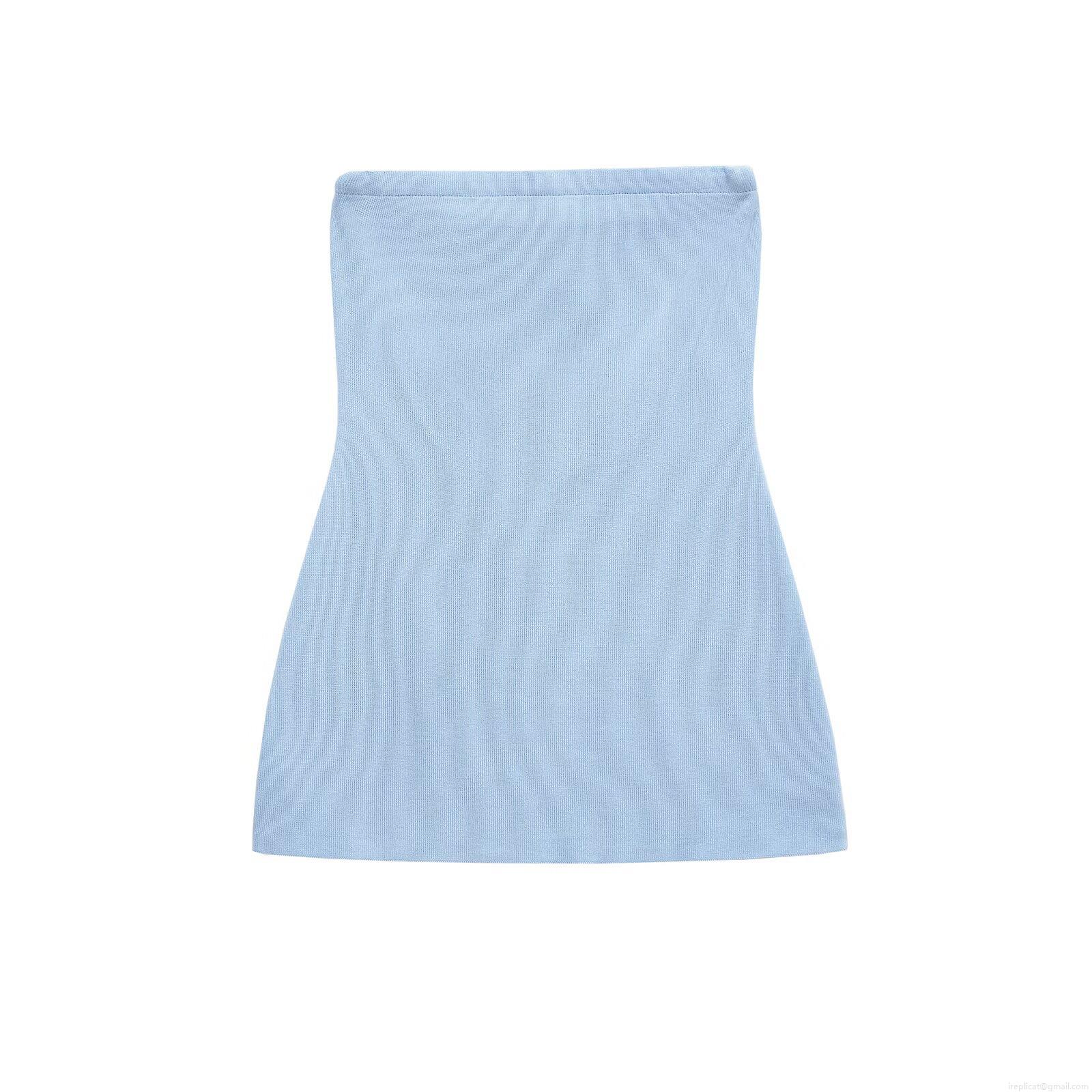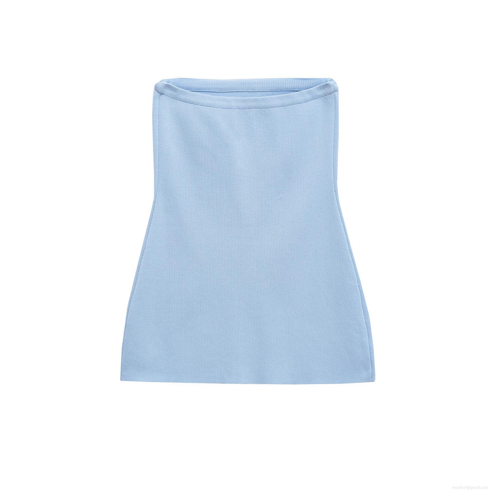 • Women's Light Blue Ribbed Knit Tube Top Strapless Slim Fit Polyester Bandeau Top Casual Solid Color Summer Crop Top For Daily Vacation