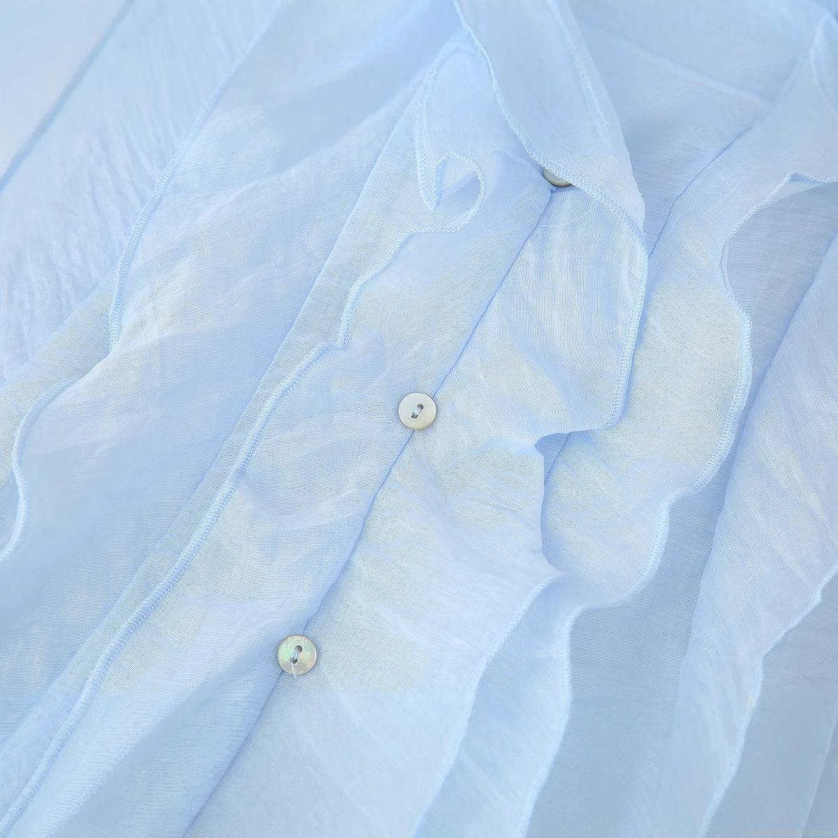 Women's Light Blue Sleeveless Chiffon Top With Ruffle Trim Detail V-Neck Button Down Pleated Slim Fit Tank Top For Summer Dating Elegant Sweet Style