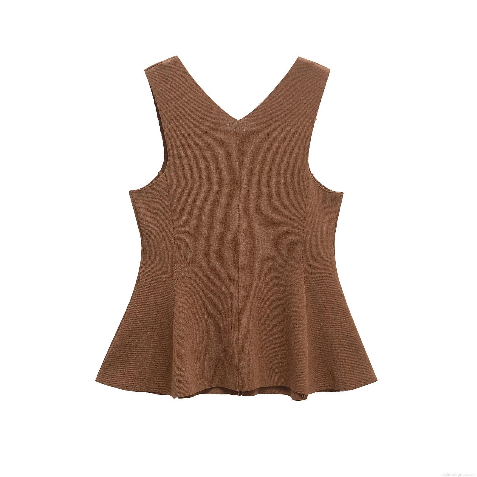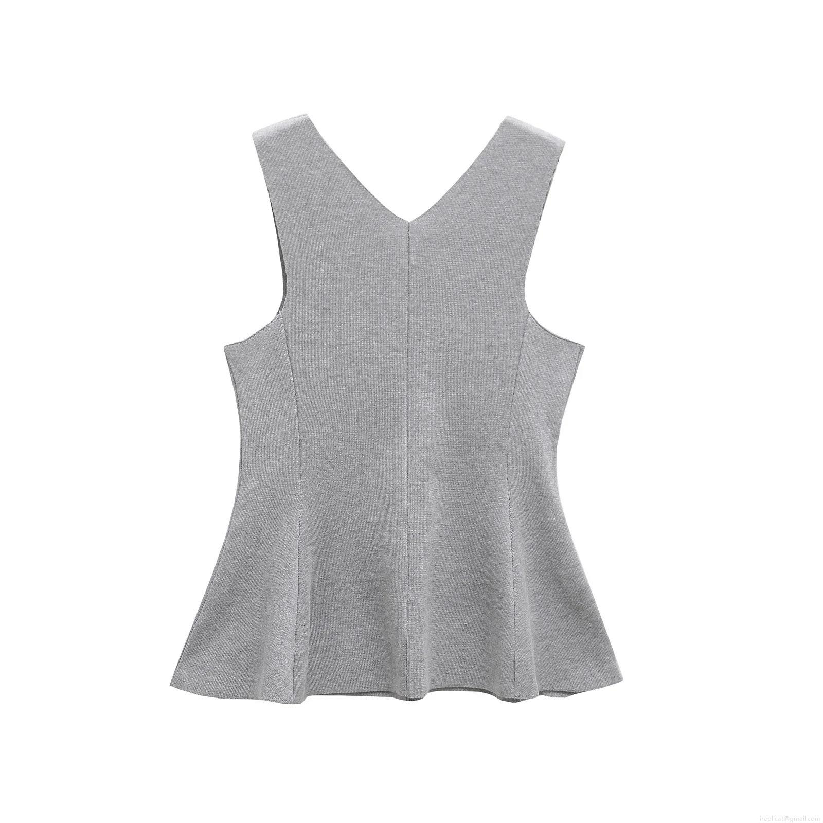 • Women's Mercerized Cotton Knitted Peplum Tank Top Elegant V-Neck Sleeveless Slim Fit Pullover Waistband Vest for Summer Party Daily Wear