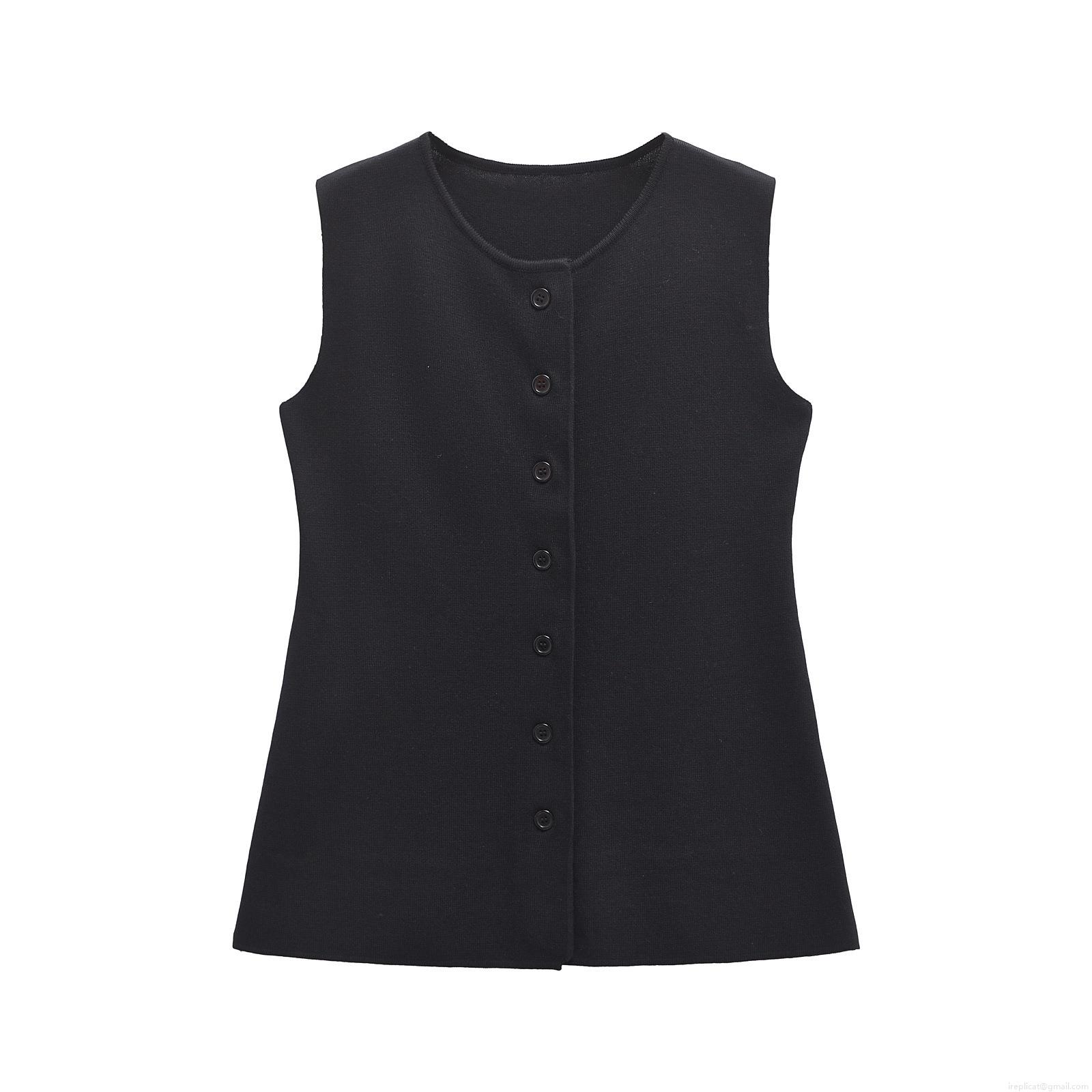 Women's Mercerized Cotton Knitted Sleeveless Tank Top Button Front Round Neck Slim Fit Vest For Daily Streetwear Casual Party Fashion