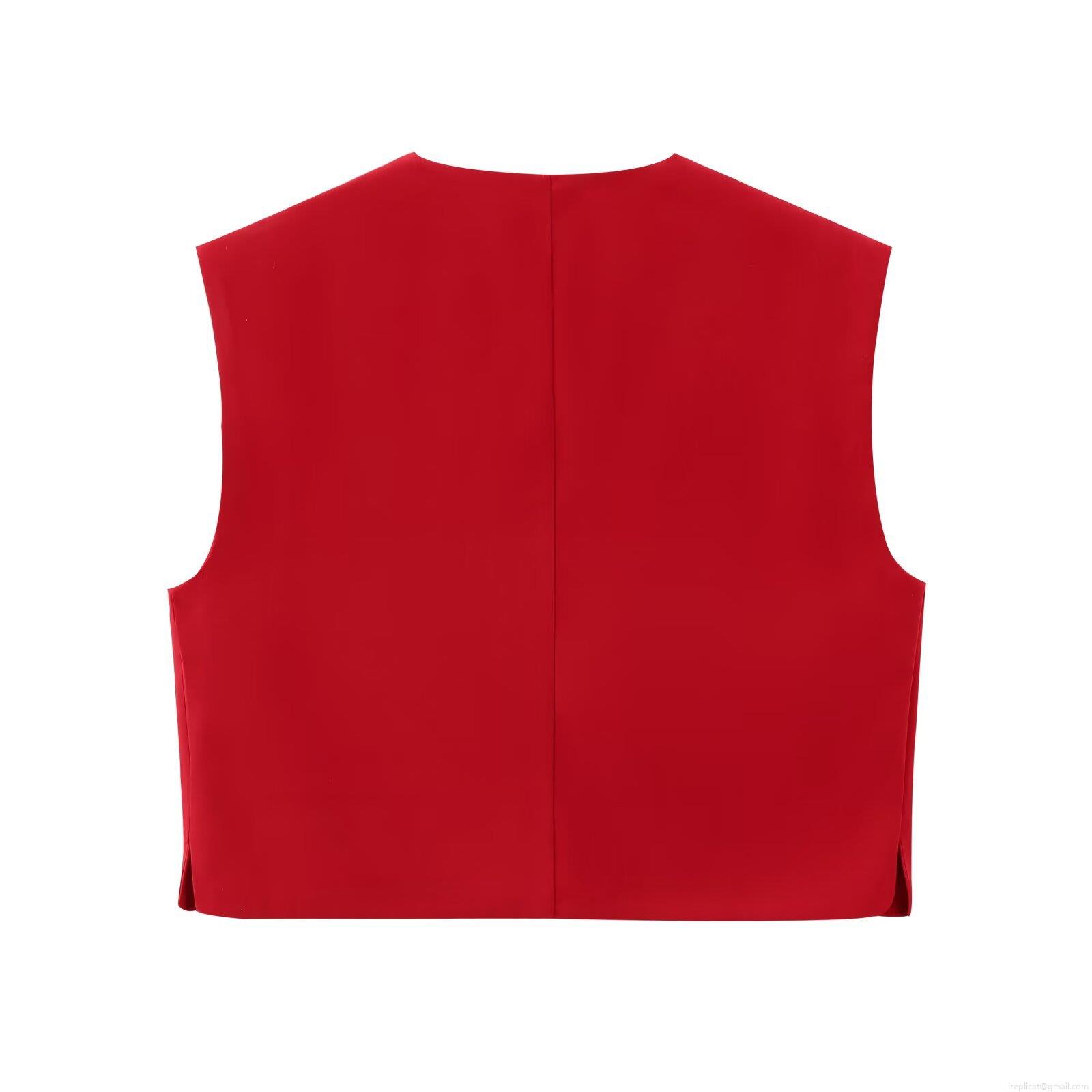 • Women's Minimalist Round Neck Button-Down Vest Summer Slim Fit Sleeveless Crop Top Polyester Blend Casual Tank Top For Office Daily Wear Multi Colors