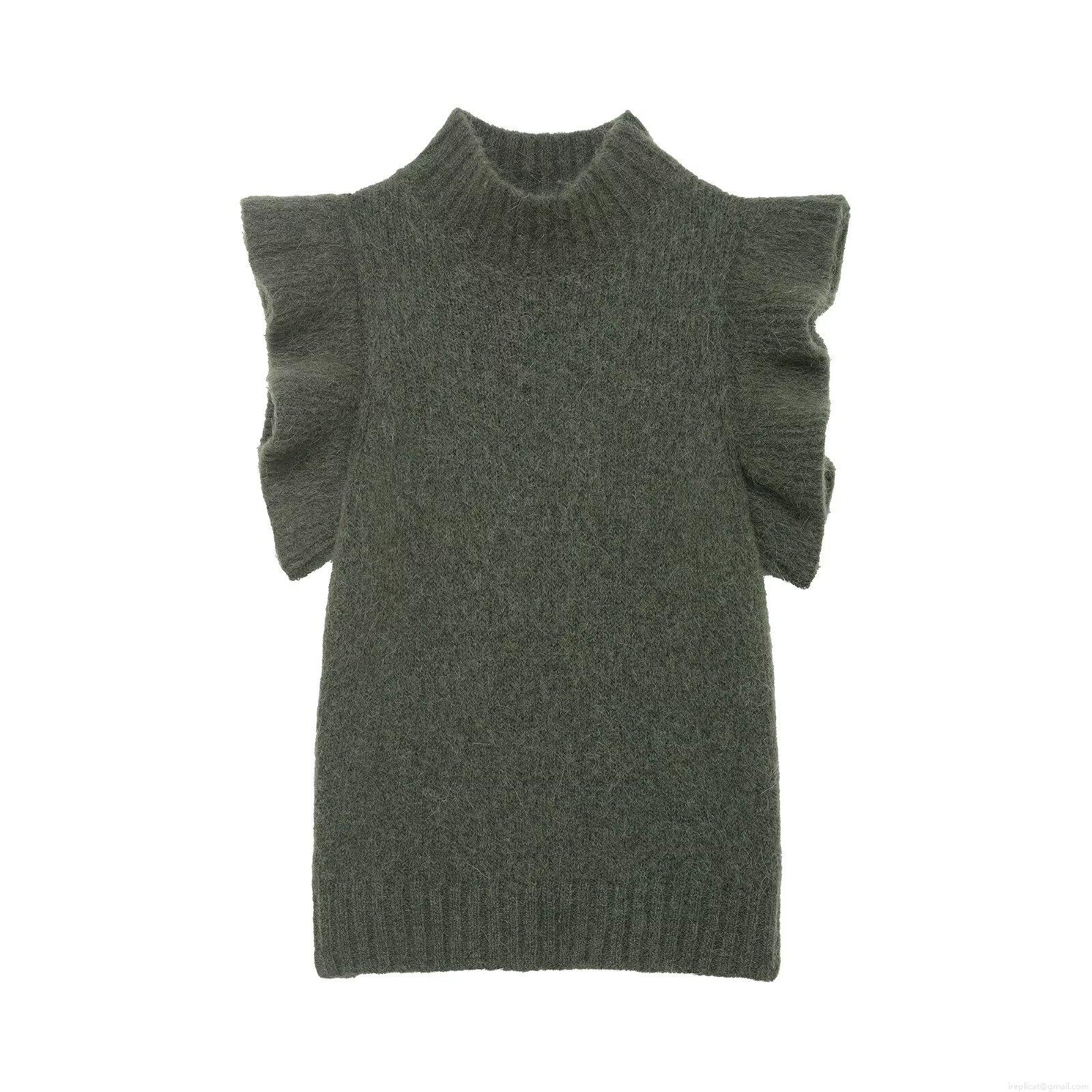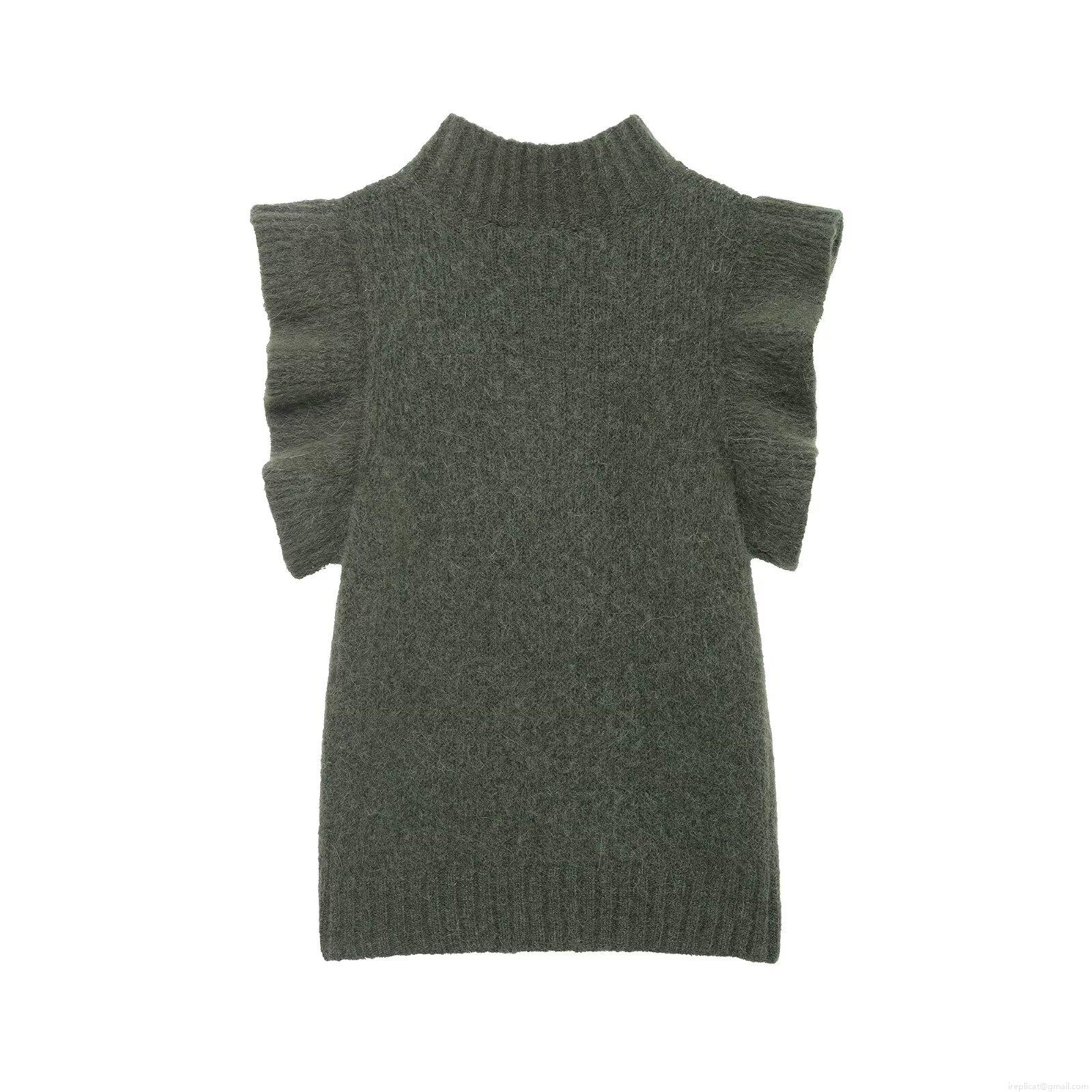 • Women's Mock Neck Knit Tank Top Ruffle Shoulder Layered Vest Elegant Solid Color Sleeveless Sweater Office Daily Party Slim Fit Polyester Knitwear