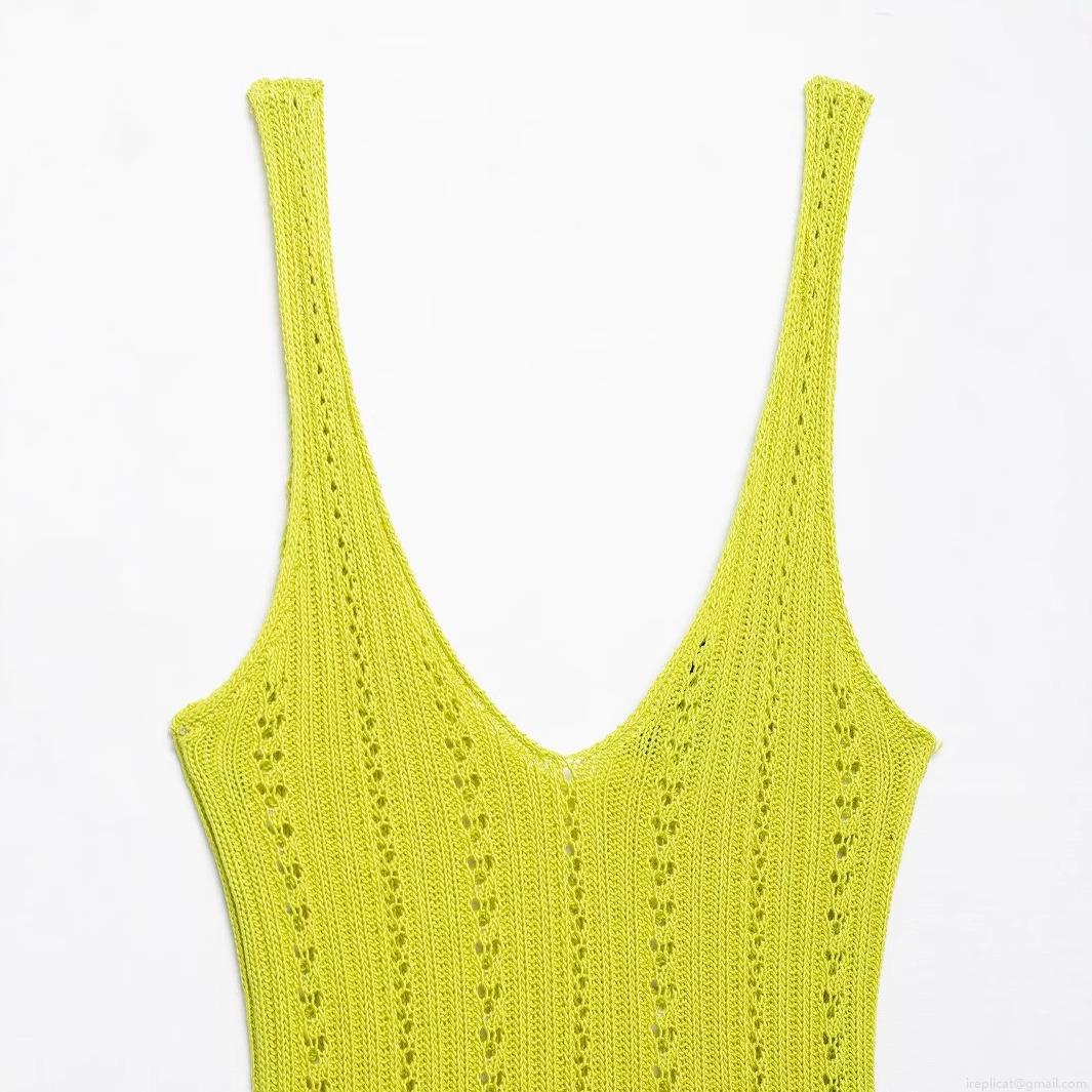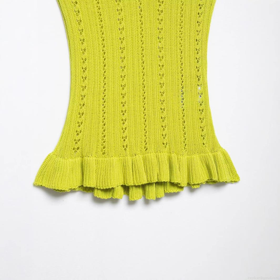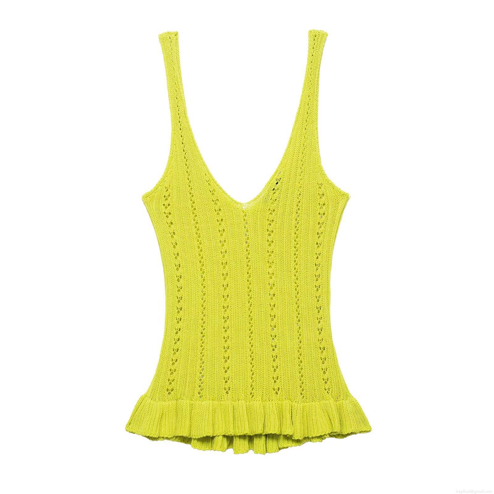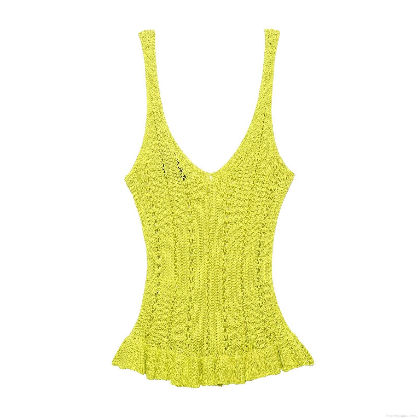 • Women's Neon Green Crochet Knit Tank Top Sexy V-Neck Hollow Out Ruffle Hem Sleeveless Cami Top Summer Beach Holiday Sweet Slim Fit Knitwear for Women