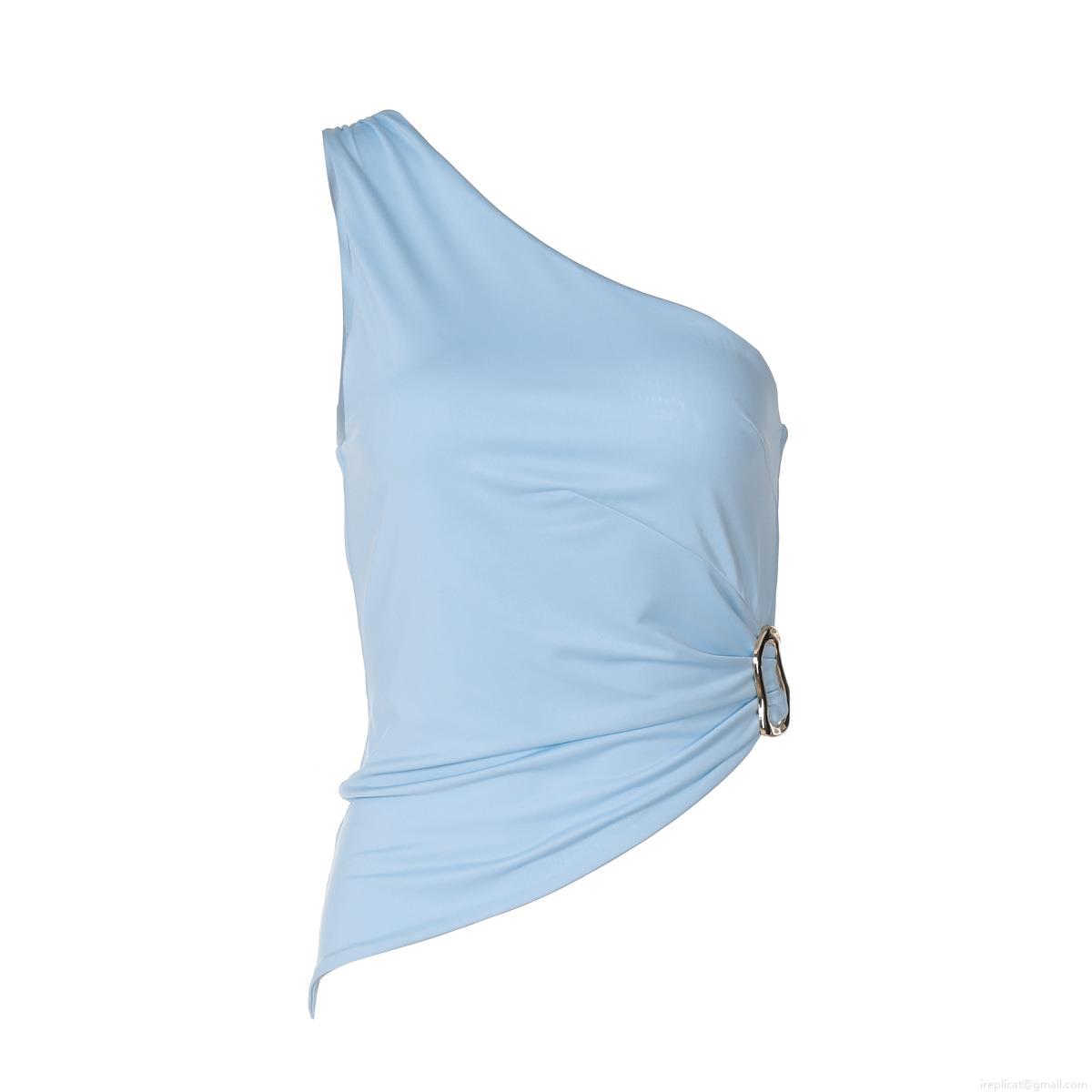 Solid Color, One Shoulder, Hollow Out, Pleats, Metal Buckle, Asymmetrical Cut