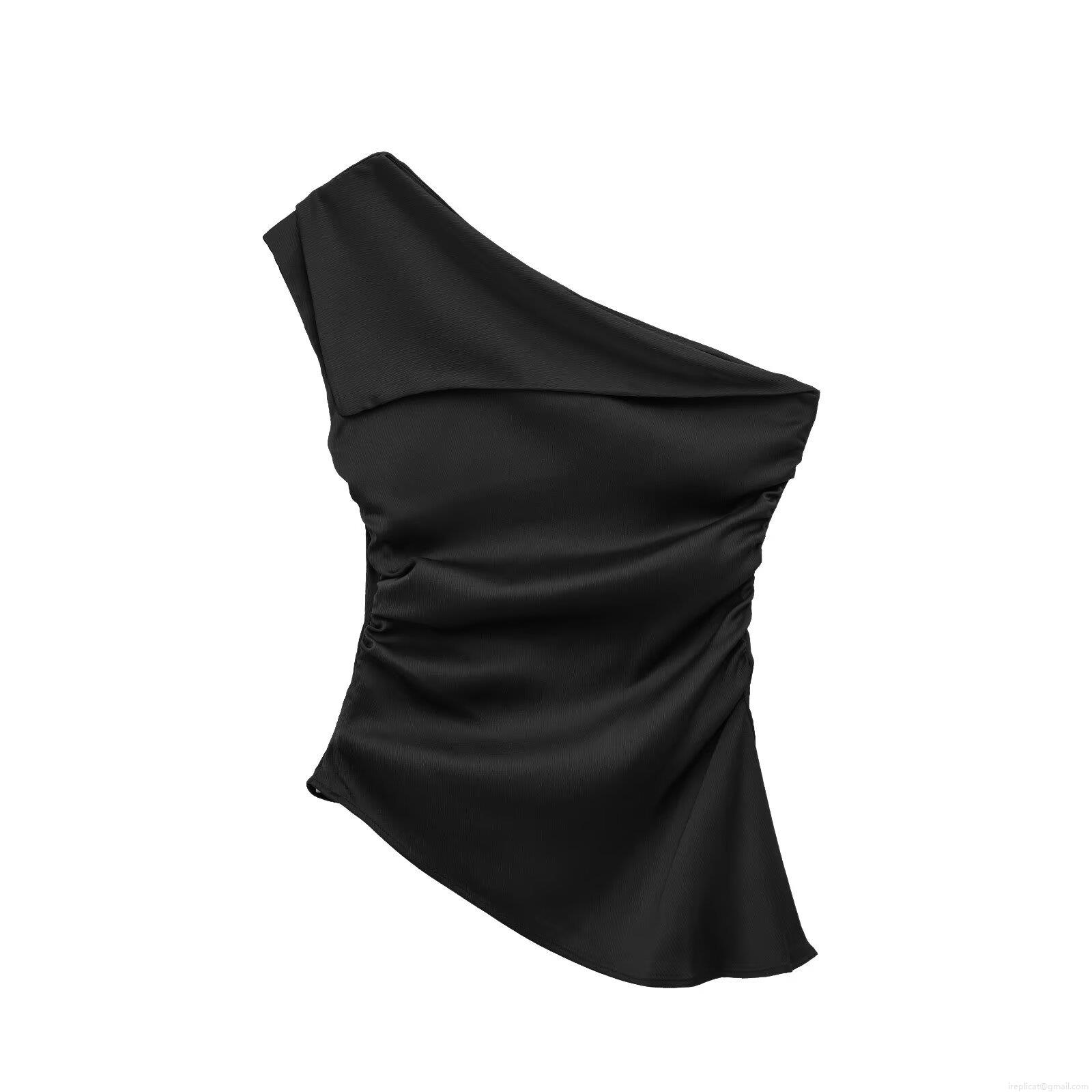• Women's One Shoulder Ruched Tank Top Sexy Asymmetric Sleeveless Summer Vest Streetwear Polyester Blend Slim Fit Top For Women