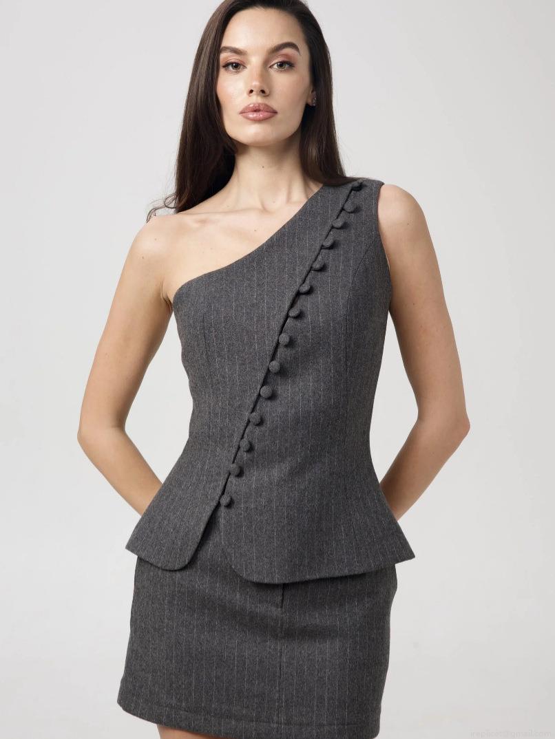 • Women's One-Shoulder Asymmetrical Tank Top Sexy Chic Kardashian Style Cotton Blend Slim Fit Sleeveless Vest With Decorative Buttons For Summer Club Party