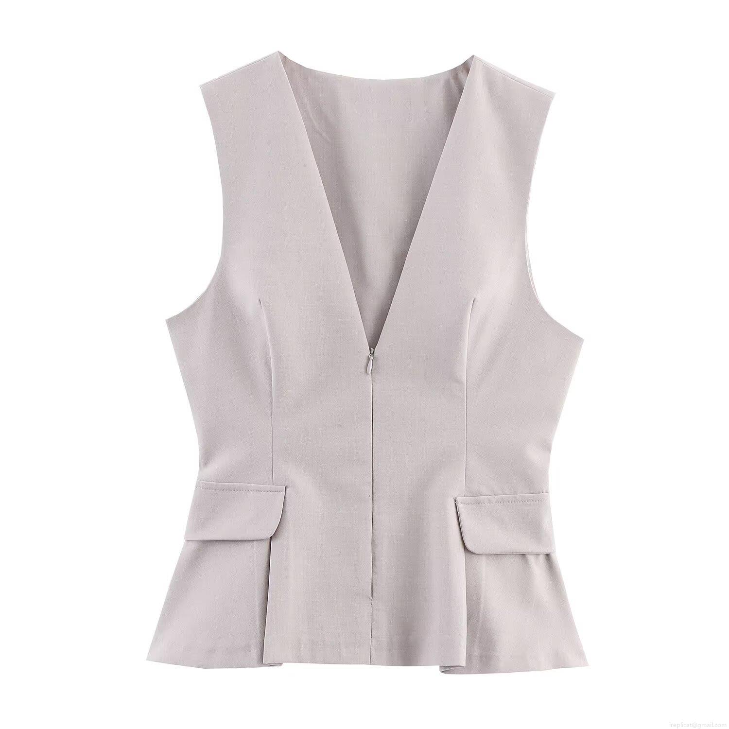 • Women's Peplum Waistcoat Top Elegant V Neck Sleeveless Vest Slim Fit Polyester Woven Fabric Zipper Front Commuter Style Office Party Wear For Ladies