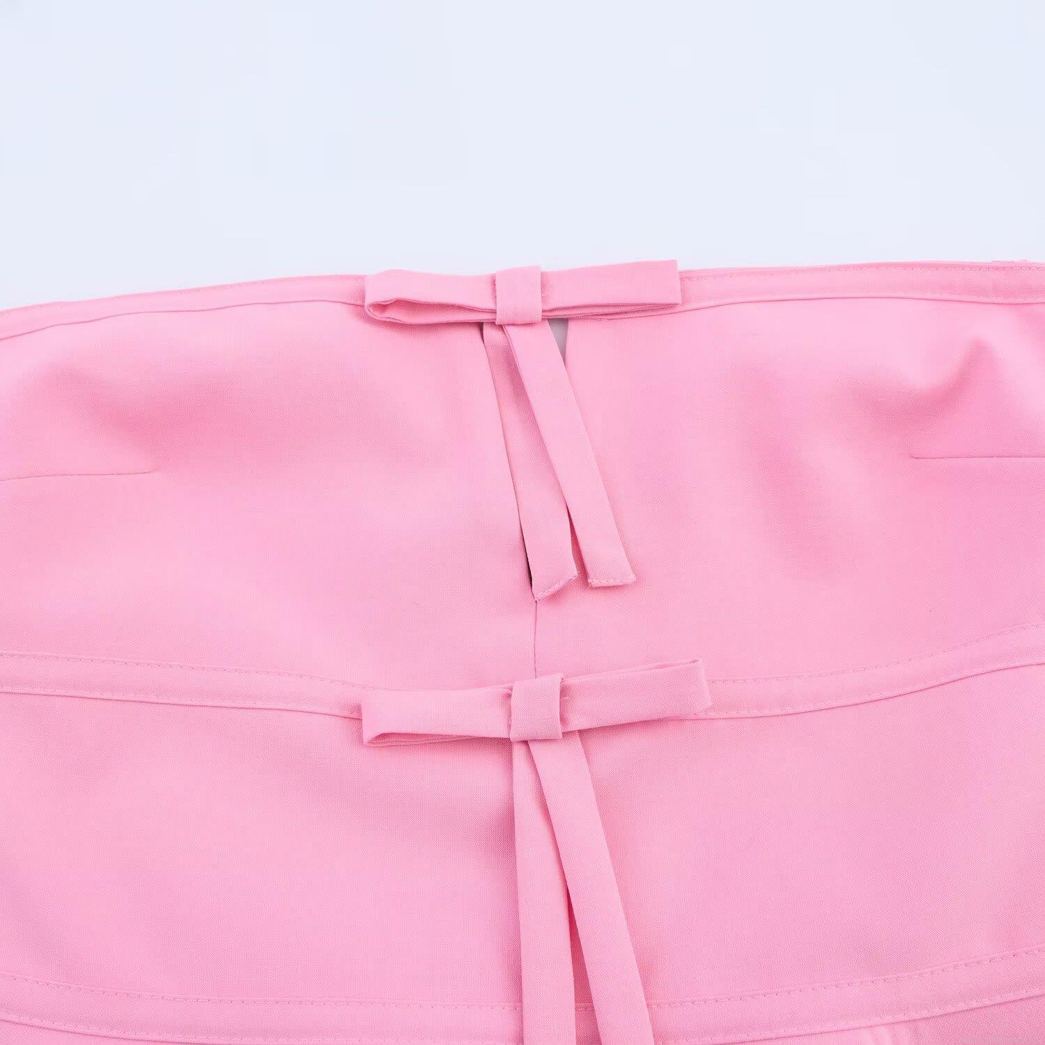 • Women's Pink Polyester Bow Decorated Tube Top Sweet Strapless Peplum Slim Fit Crop Top for Party Dating Summer