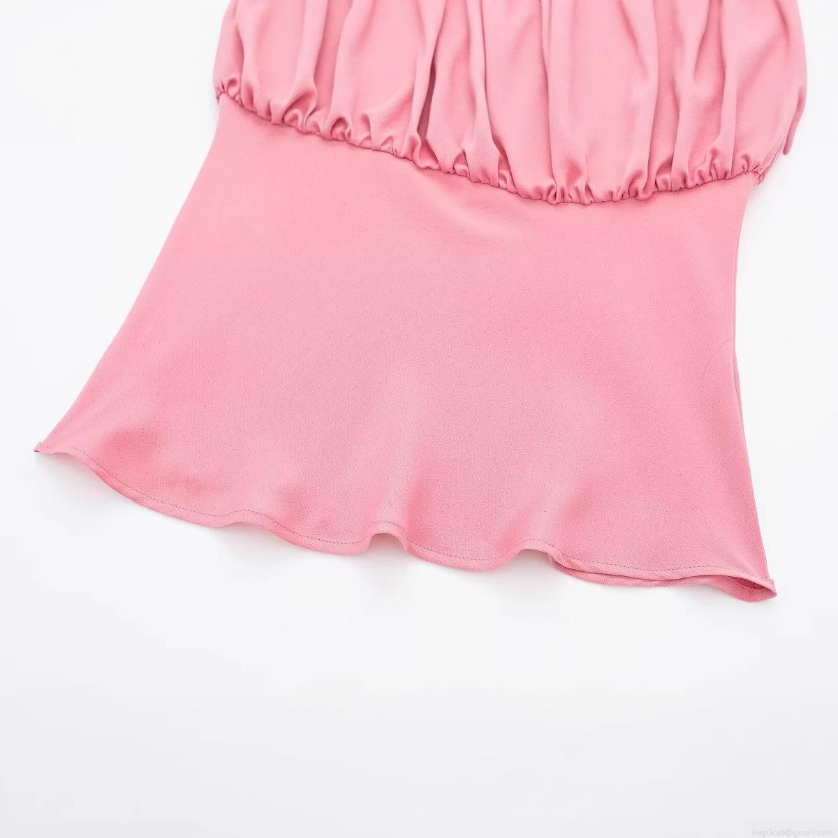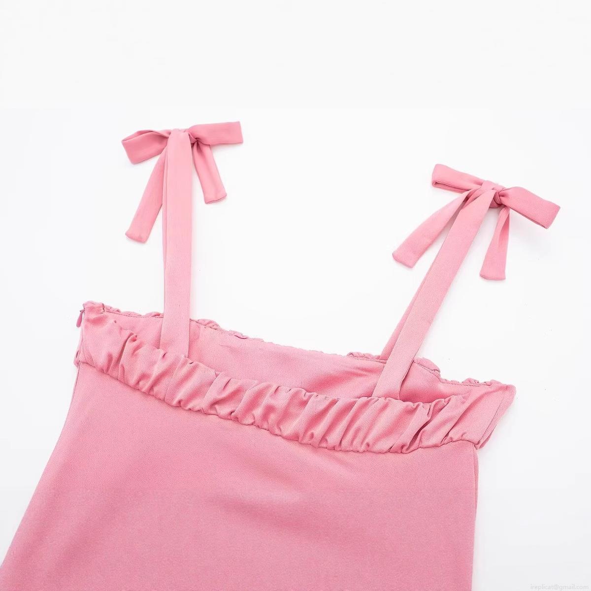 • Women's Pink Ruched Bow Tie Shoulder Strap Camisole Top Polyester Satin Texture Slim Fit Crop Top For Summer Date Night Party Sweet Style Women Clothing