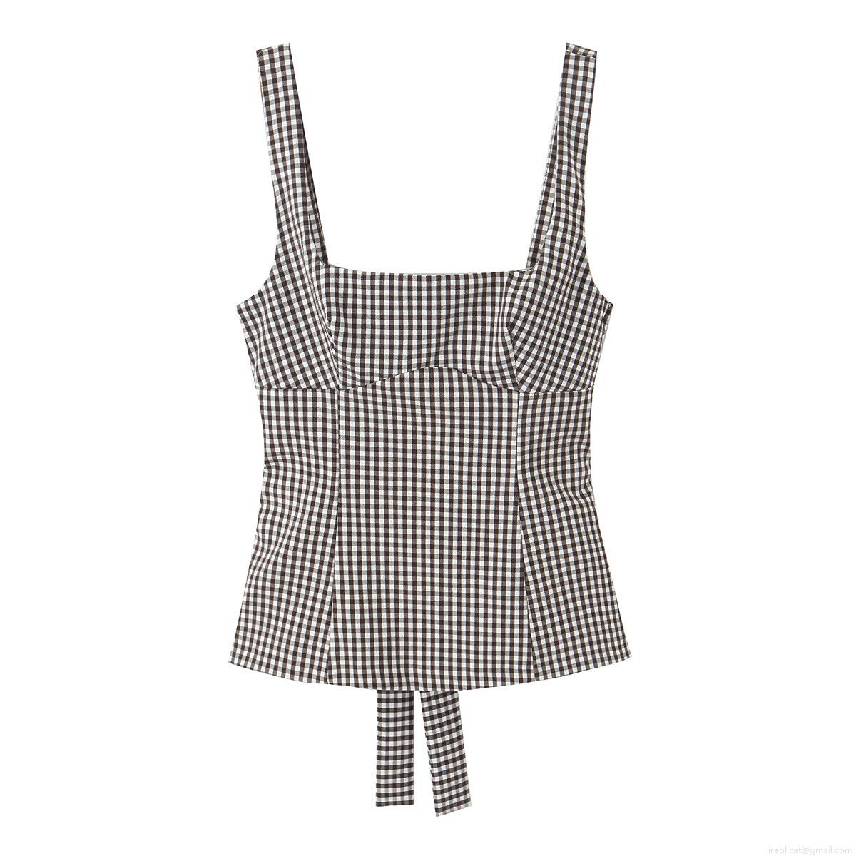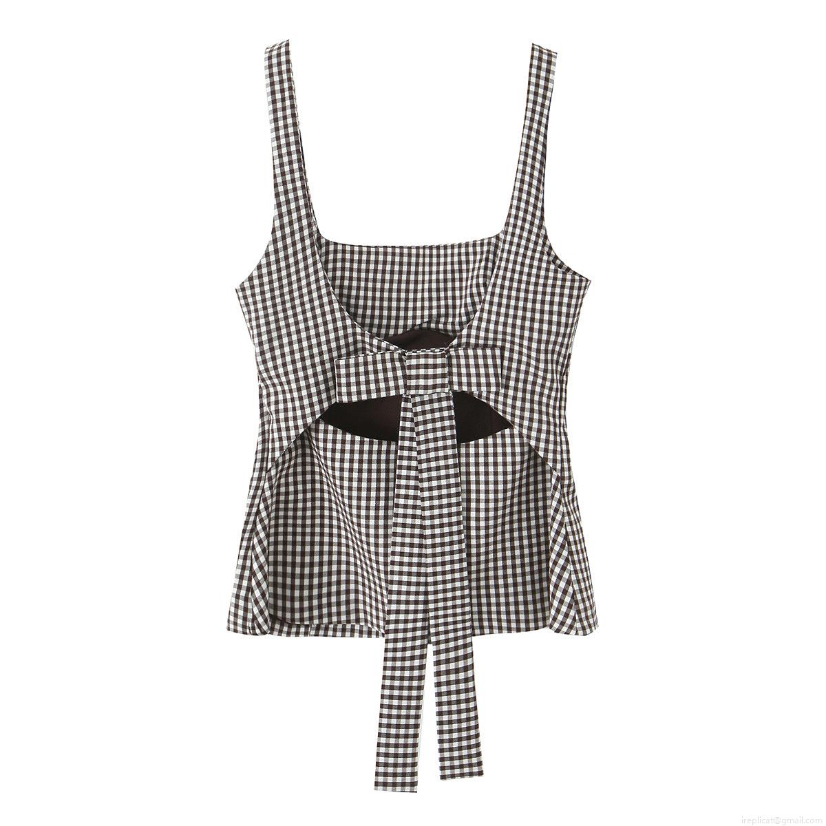 • Women's Plaid Gingham Camisole Bow Cutout Backless Sleeveless Tank Top Polyester Summer Sexy Slim Fit Crop Top for Women Streetwear