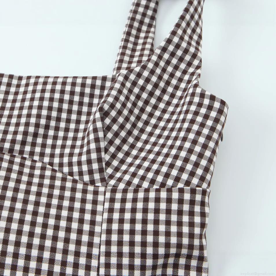 Bow, Checkered Pattern, Hollow Out, Backless, Vichy Check