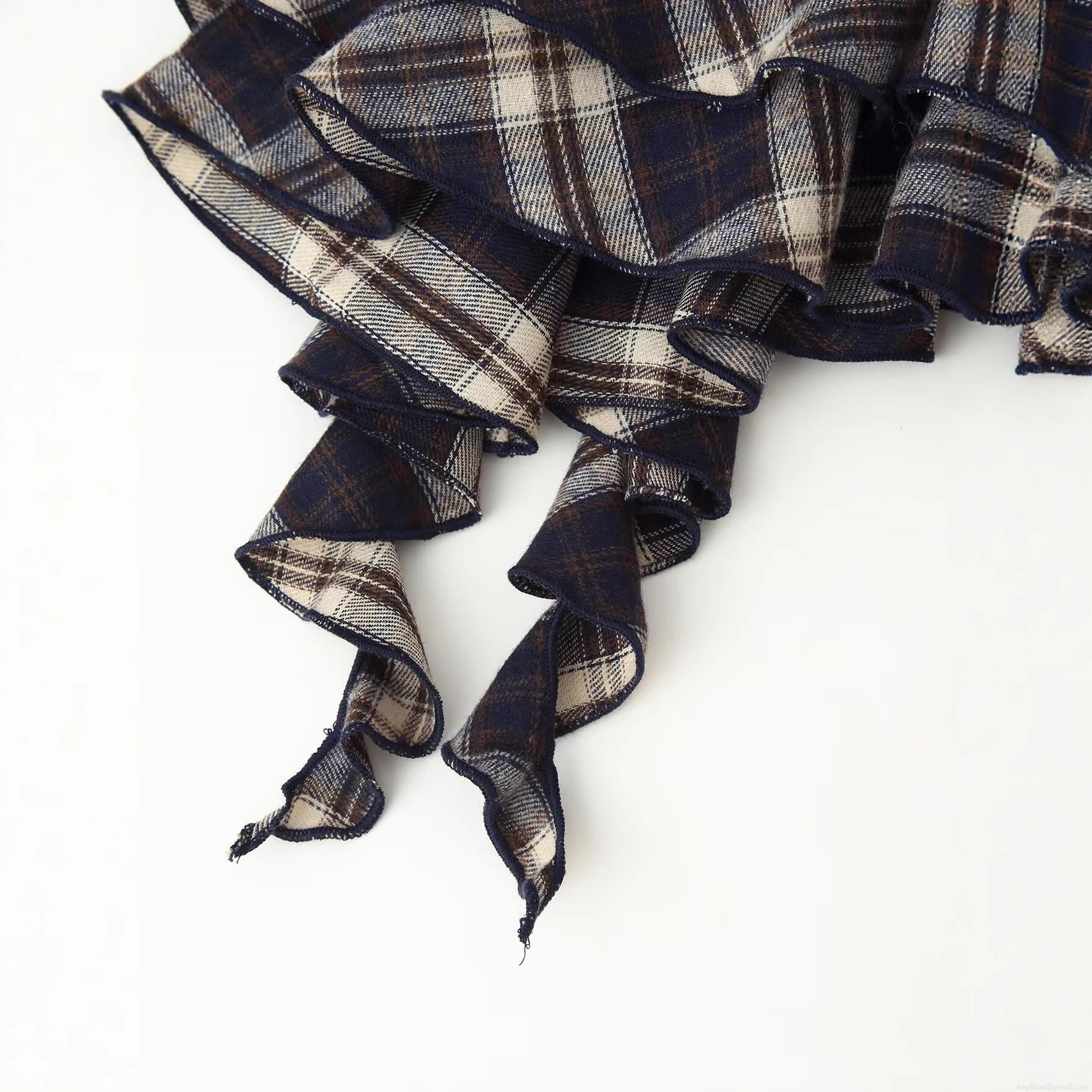 Checkered Pattern, Ruffles, Off-shoulder, Irregular Hem, Layered Decoration