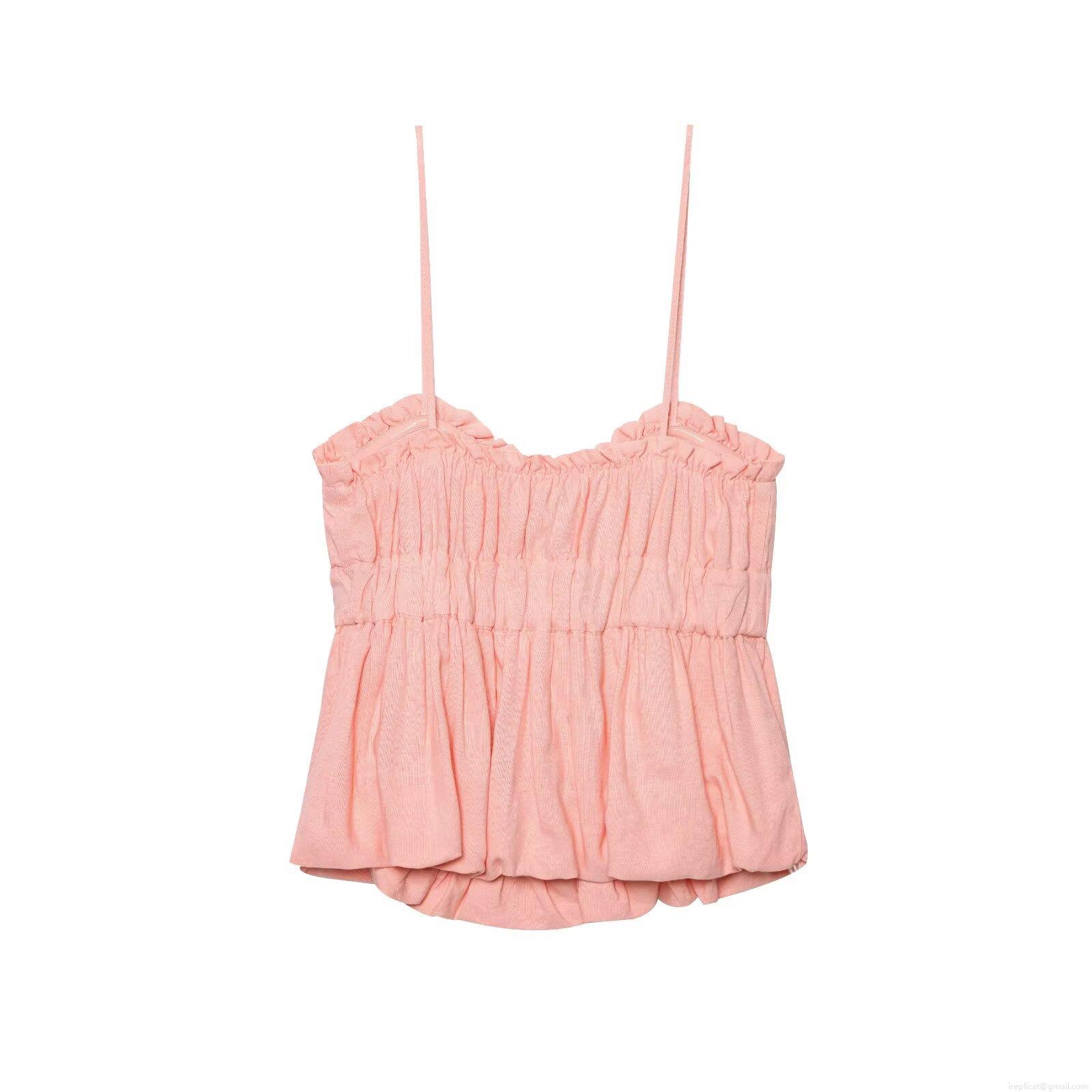 • Women's Pleated Drawstring Cami Top Cotton Blend Ruffle Hem Tank Top With Wooden Beads Boho Sleeveless Summer Beach Cropped Vest For Women
