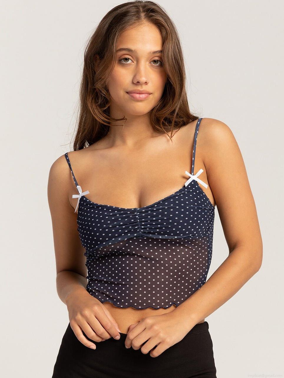 • Women's Polka Dot Camisole Mesh See-Through Crop Top With Bows Sexy Y2K Sleeveless Tank Top Summer Party Clubwear