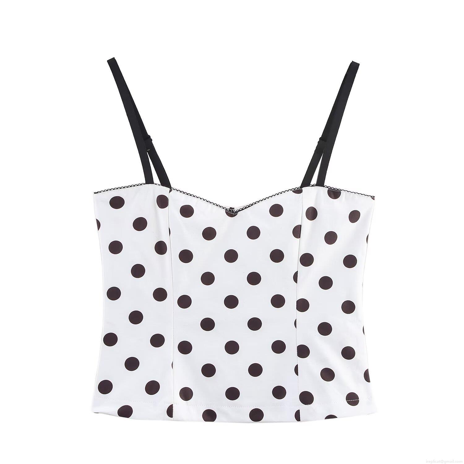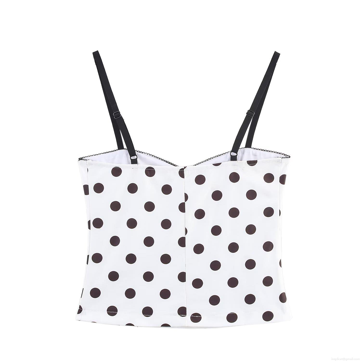 • Women's Polka Dot Camisole Tank Top Spaghetti Strap V Neck Slim Fit Crop Top Polyester Blend Summer Beach Casual Daily Wear Elegant INS Influencer Style