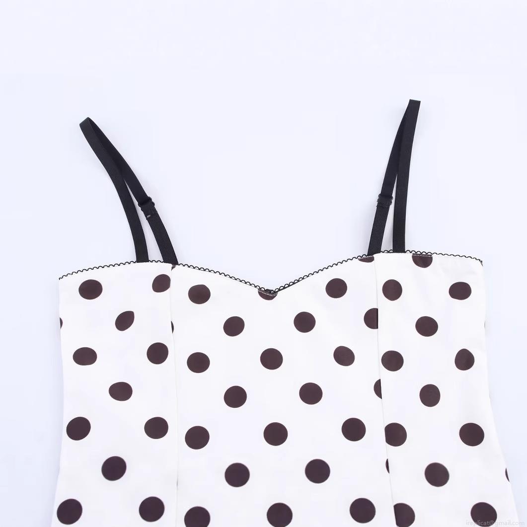 Polka Dots, V-neck, Thin Shoulder Straps, Overlocking Process