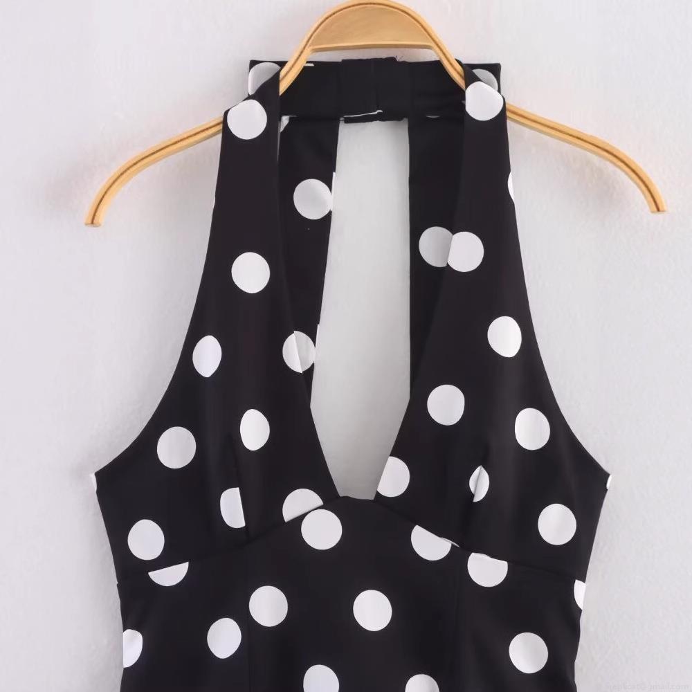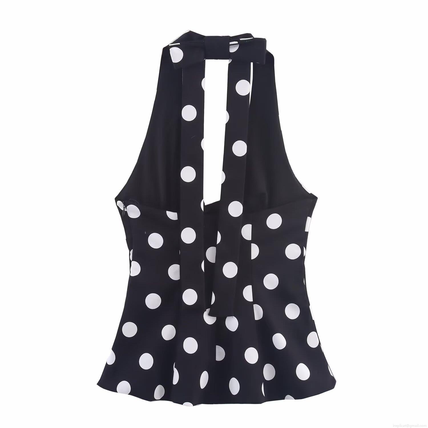 • Women's Polka Dot Halter Top Polyester Backless Sexy V Neck Bow Detail Sleeveless Shirt For Summer Party Vacation