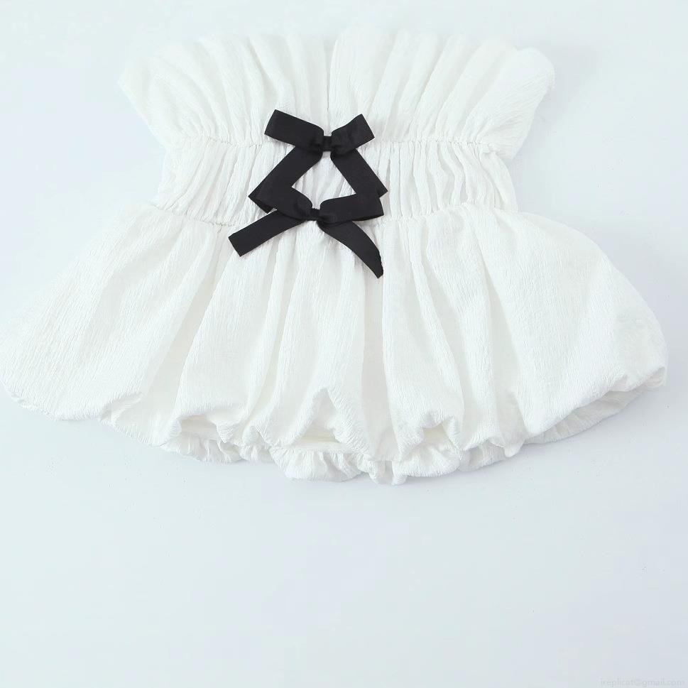 • Women's Polyester V-Neck Sleeveless Tank Top With Black Bow Accent Pleated Hem Textured Slim Fit Sweet Summer Camisole Top
