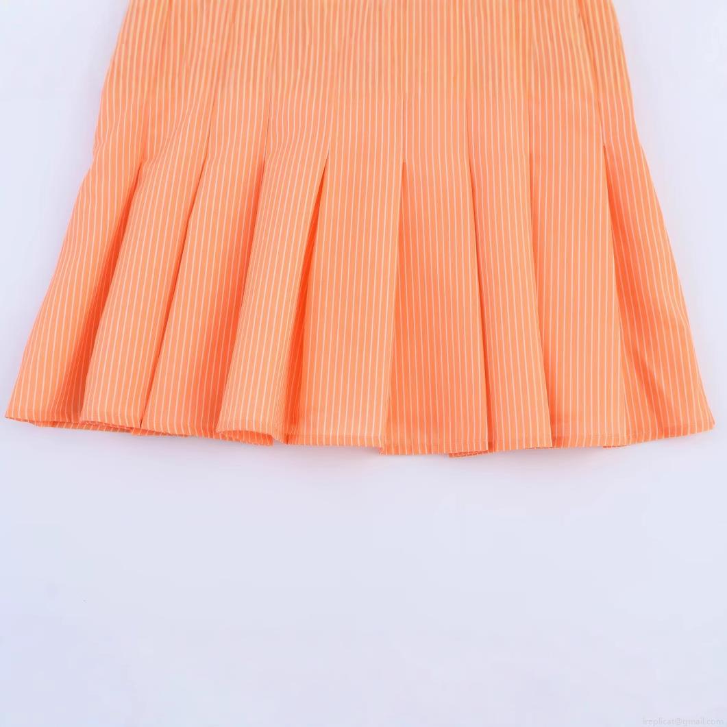 Women's Poplin Orange White Striped Cami Top Sexy V-Neck Adjustable Spaghetti Straps Pleated Peplum Hem Back Zipper Sleeveless Summer Blouse