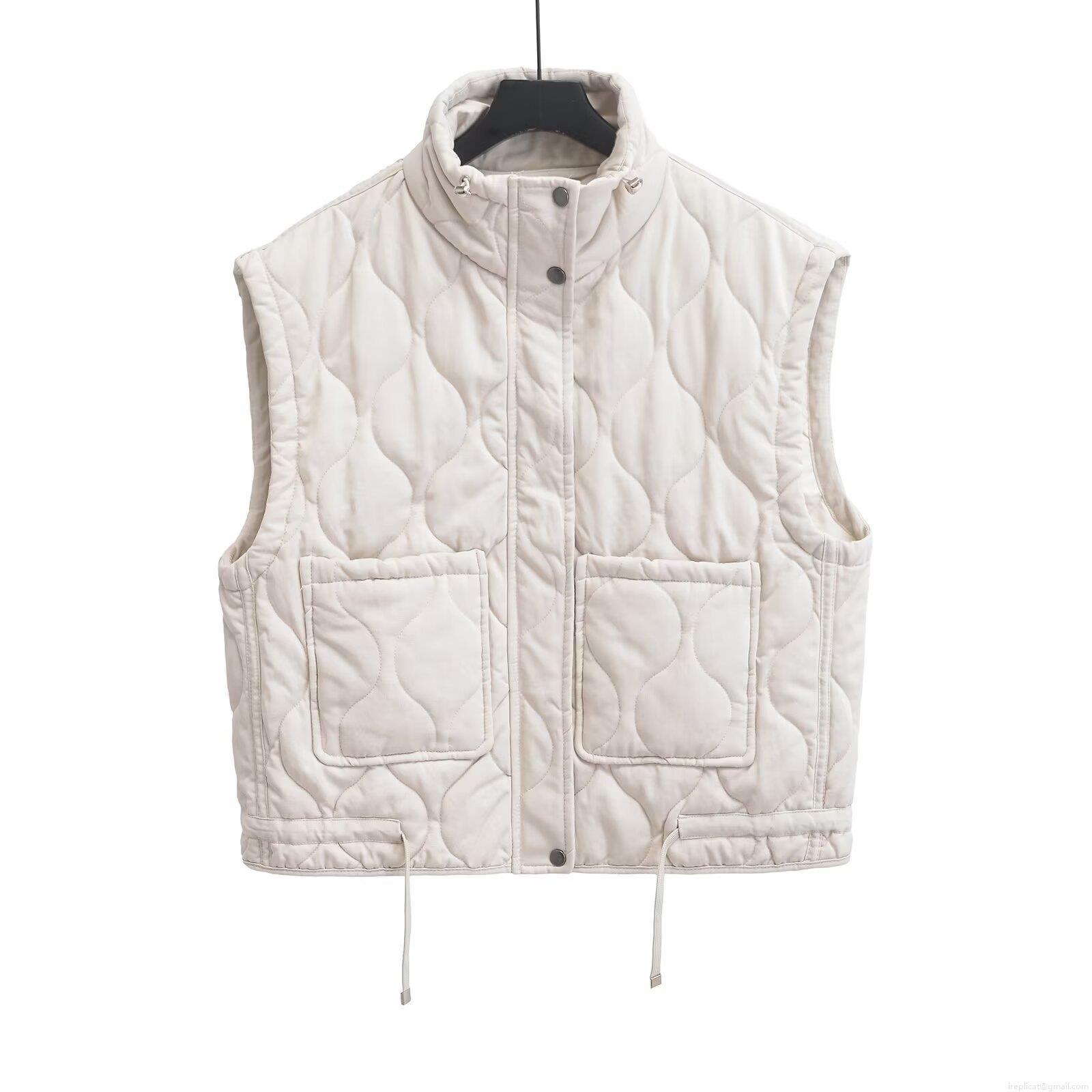 Women's Quilted Vest Sleeveless Stand Collar Jacket With Drawstring Hem Pockets Diamond Wave Quilted Waistcoat Casual Solid Color Outerwear For Women