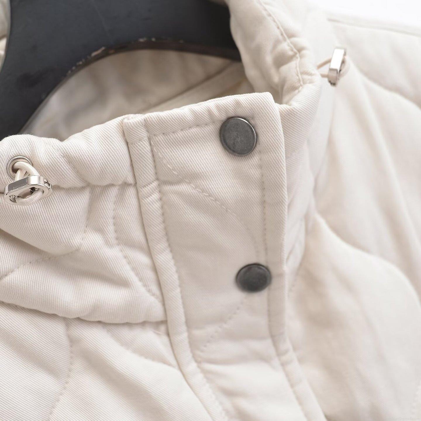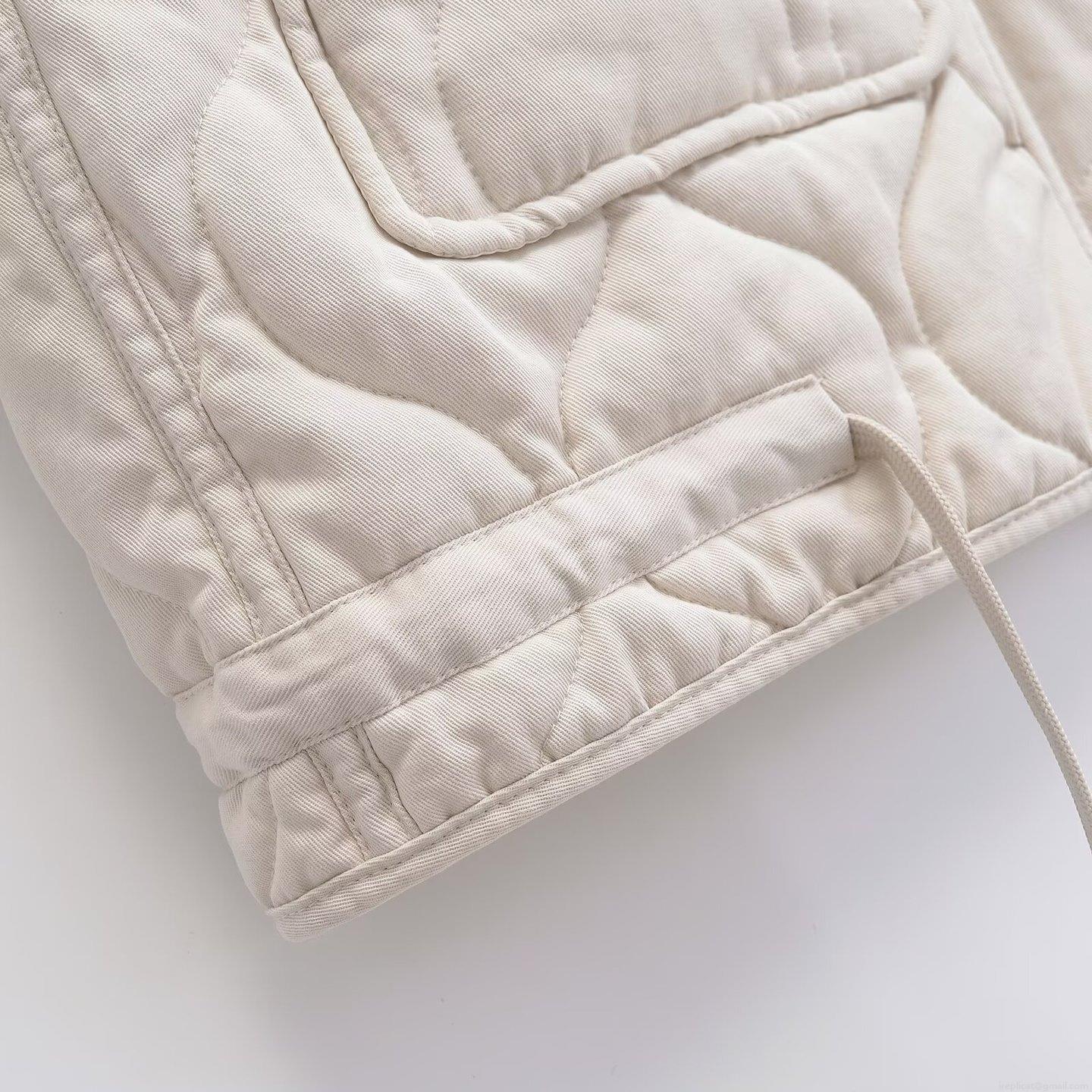 Solid Color, Wave, Quilting, Drawstring, Diamond, Metal Buckle, Lace, Stand-up Collar