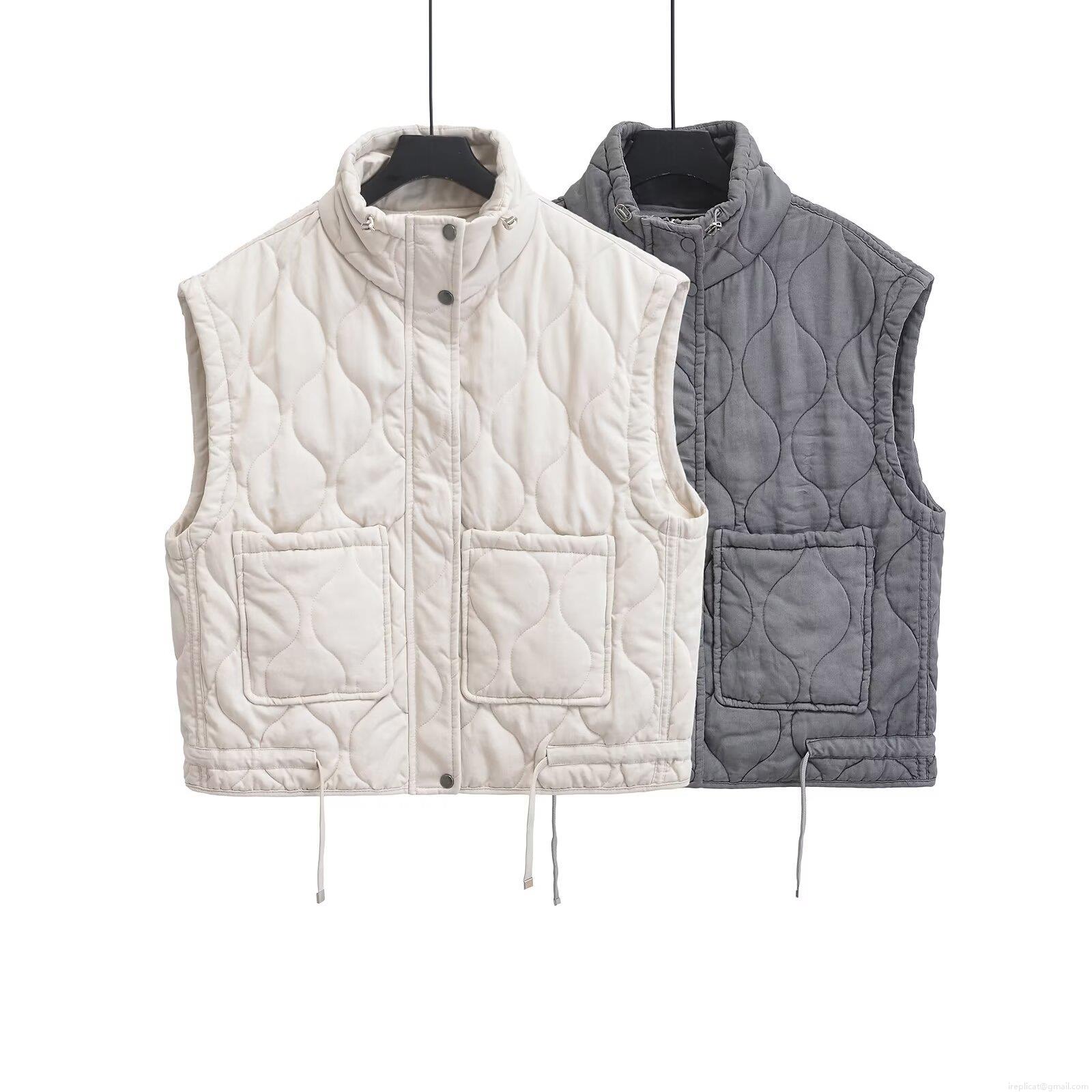 • Women's Quilted Vest Sleeveless Stand Collar Jacket With Drawstring Hem Pockets Diamond Wave Quilted Waistcoat Casual Solid Color Outerwear For Women