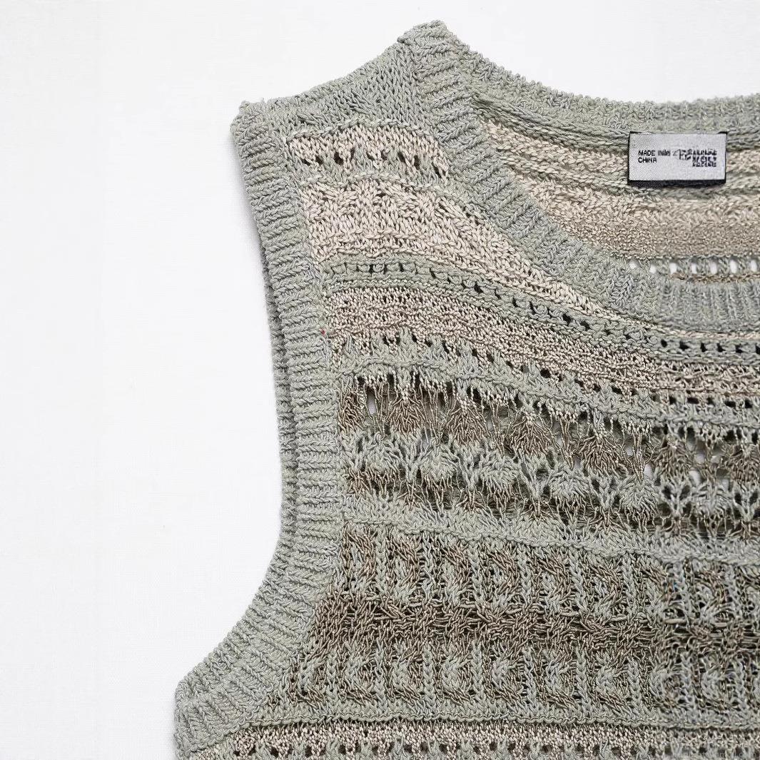 • Women's Retro Hollow Out Knit Tank Top Multicolor Striped Crochet Sleeveless Round Neck Summer Streetwear Crochet Crop Top For Daily Vacation Women Clothes