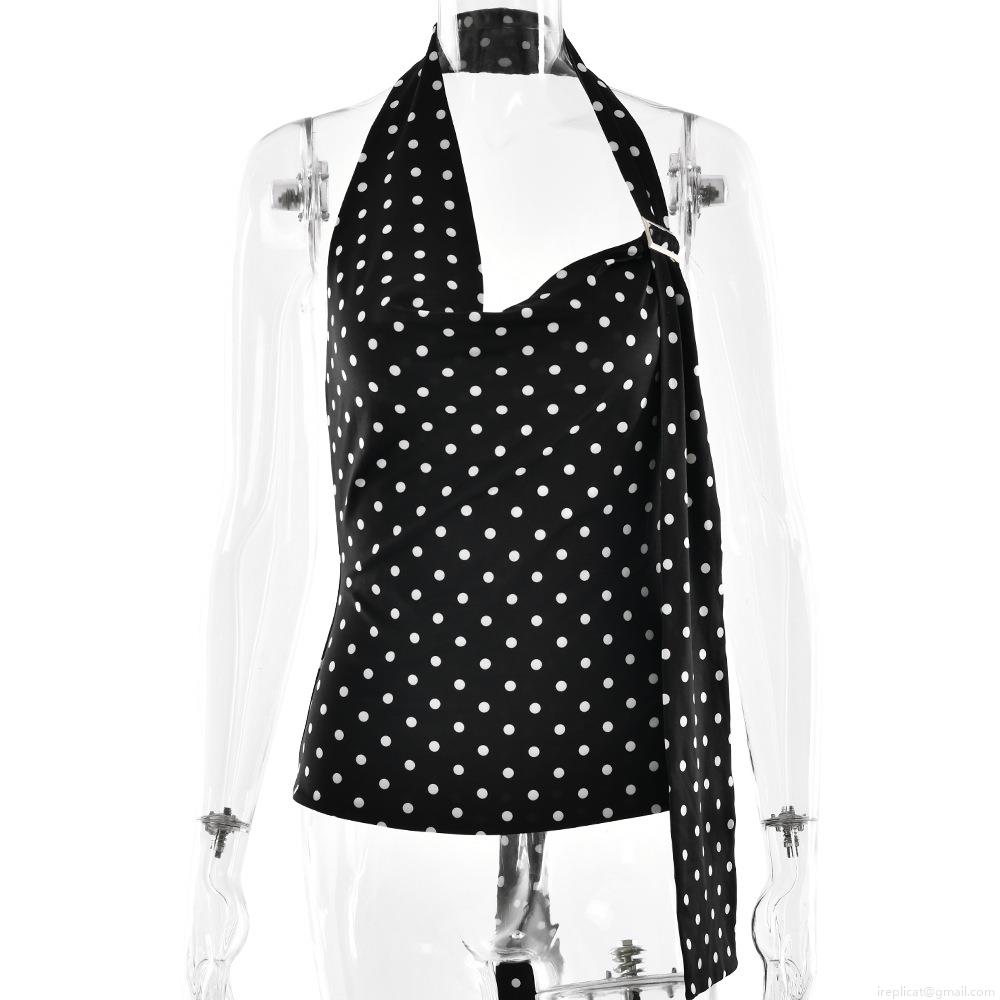 • Women's Retro Polka Dot Halter Top Cowl Neck Sleeveless Backless Slim Fit Tank Top Summer Sexy Draped Cami Top with Metal Ring