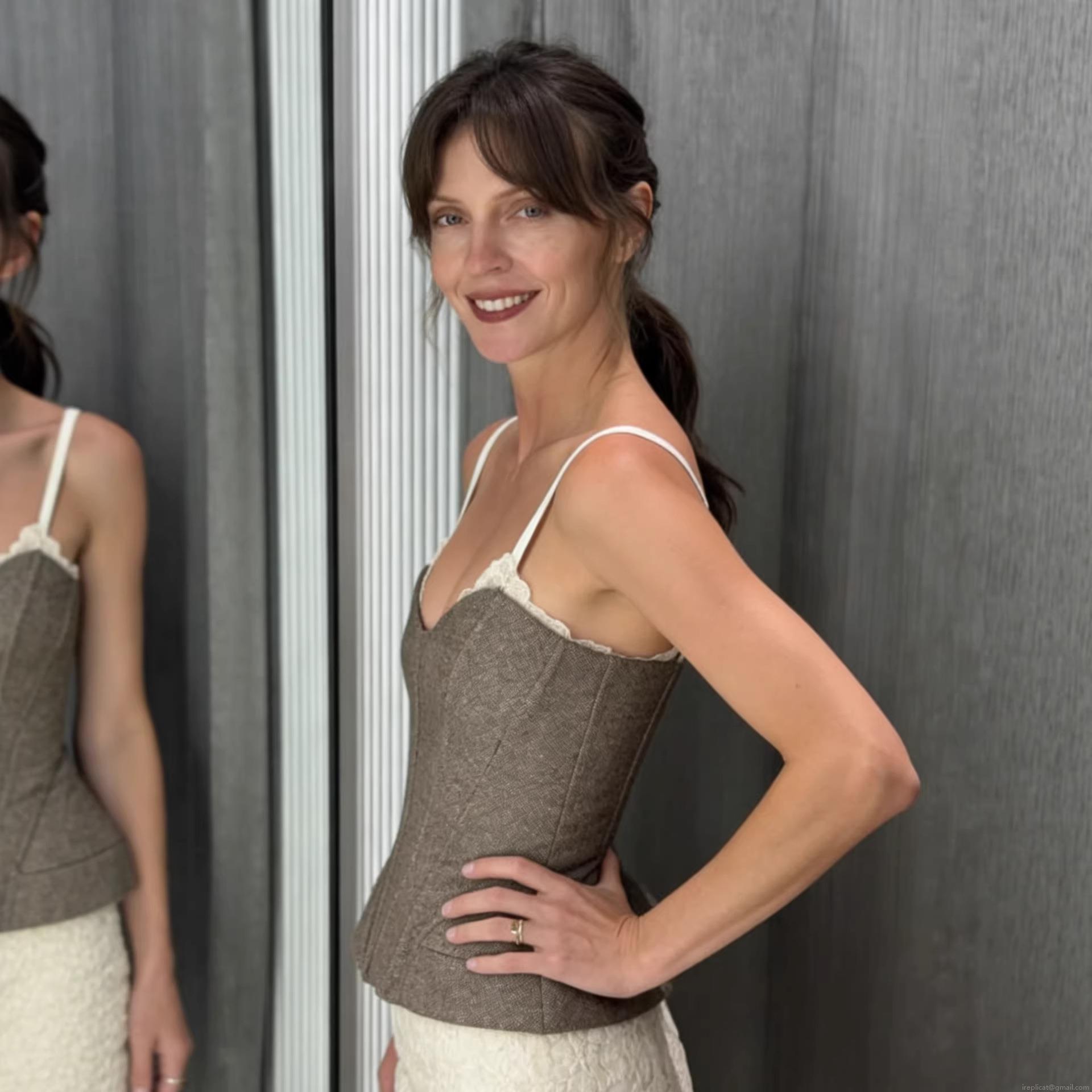 • Women's Retro Sexy Corset Top Brown Polyester Lace Patchwork Slim Fit Boned Tank Top For Party Clubwear Sleeveless Fashion Vest