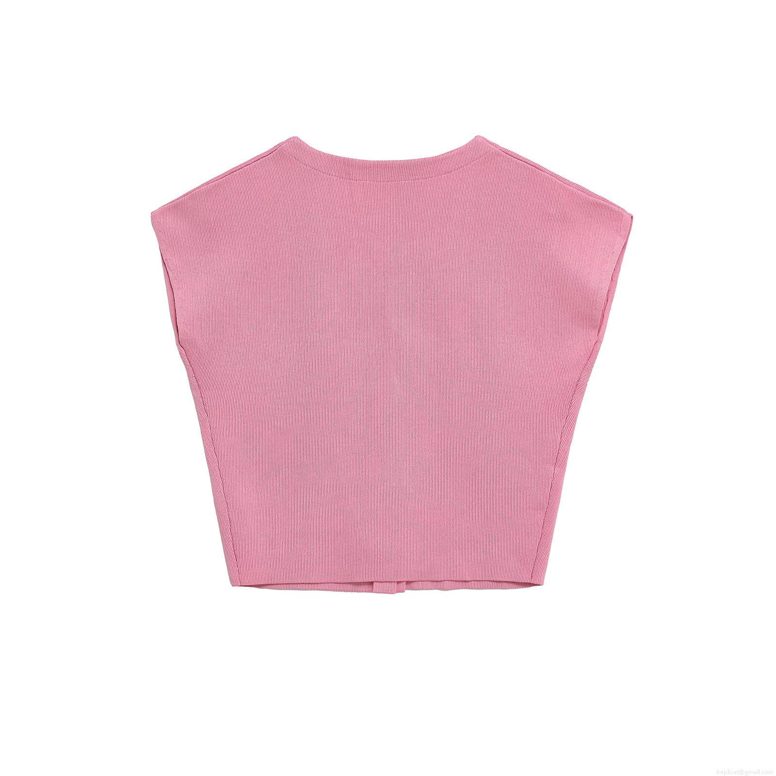 • Women's Ribbed Knit Sleeveless Cardigan Tank Top With Heart Shape Metal Buttons Round Neck Solid Peach Pink Slim Fit Summer Streetwear Vest For Women Fashion