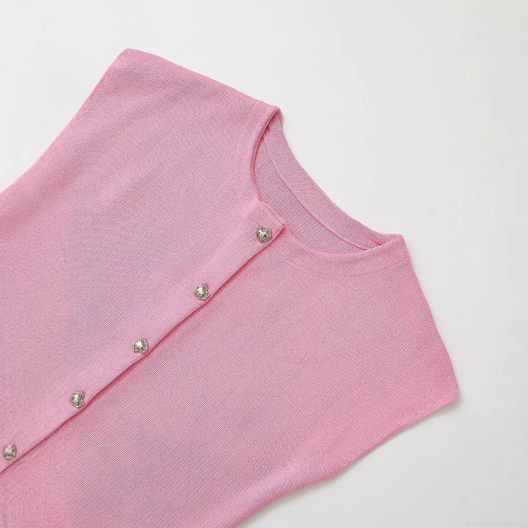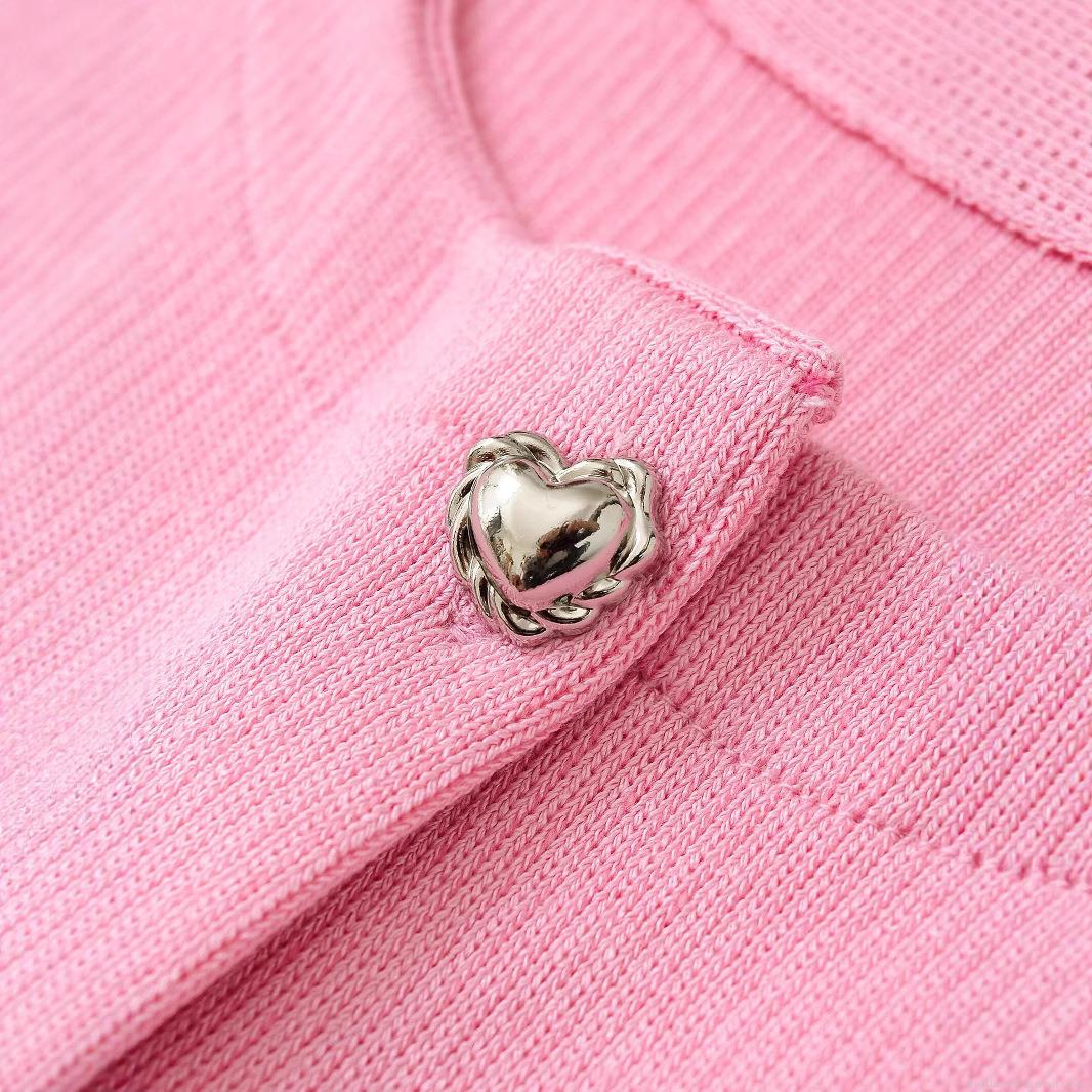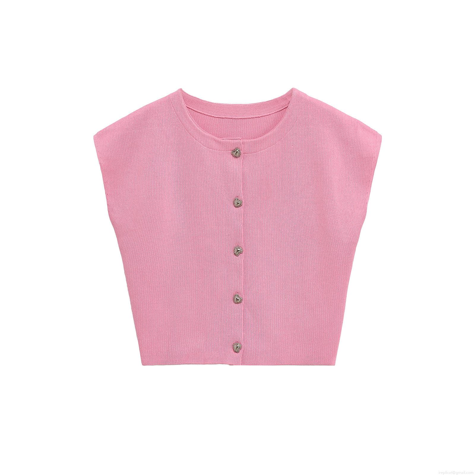 Women's Ribbed Knit Sleeveless Cardigan Tank Top With Heart Shape Metal Buttons Round Neck Solid Peach Pink Slim Fit Summer Streetwear Vest For Women Fashion