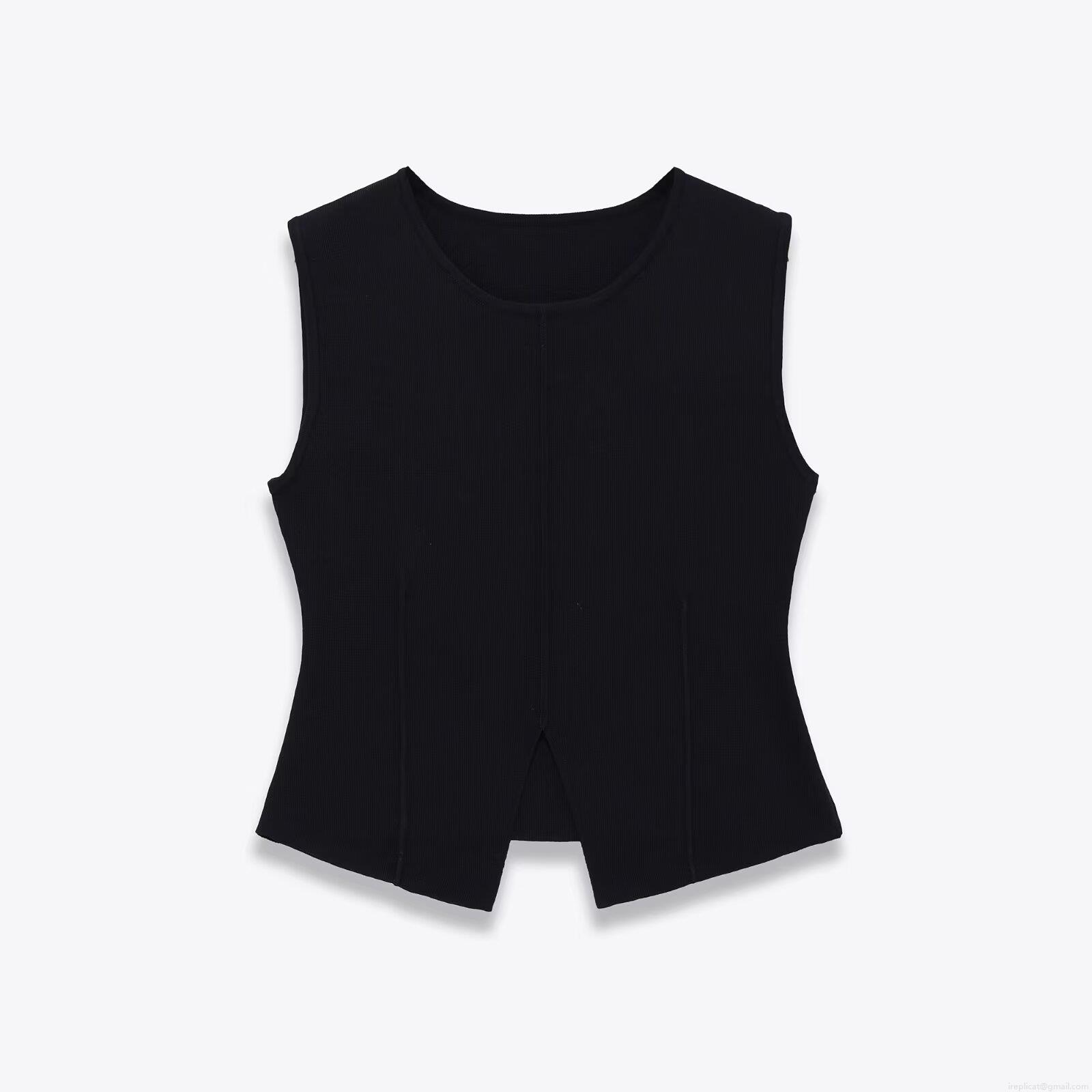 • Women's Ribbed Knit Tank Top Round Neck Split Hem Sleeveless Slim Fit Polyester Vest Sexy Solid Color Casual Chic Summer Streetwear Top For Ladies