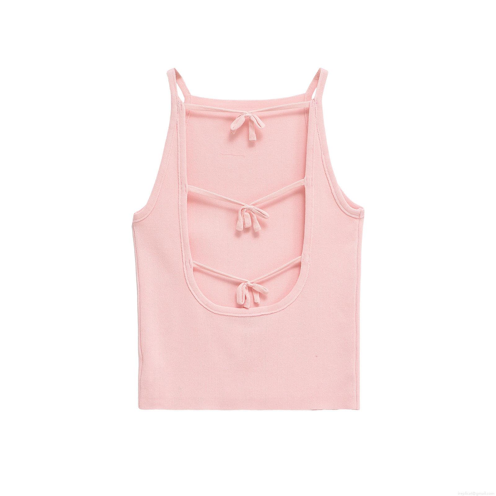 • Women's Ribbed Knit Tank Top Sexy Backless Bow Tie Decoration Sleeveless Halter Camisole Summer Streetwear Chic Slim Fit Cami For Ladies Daily Vacation