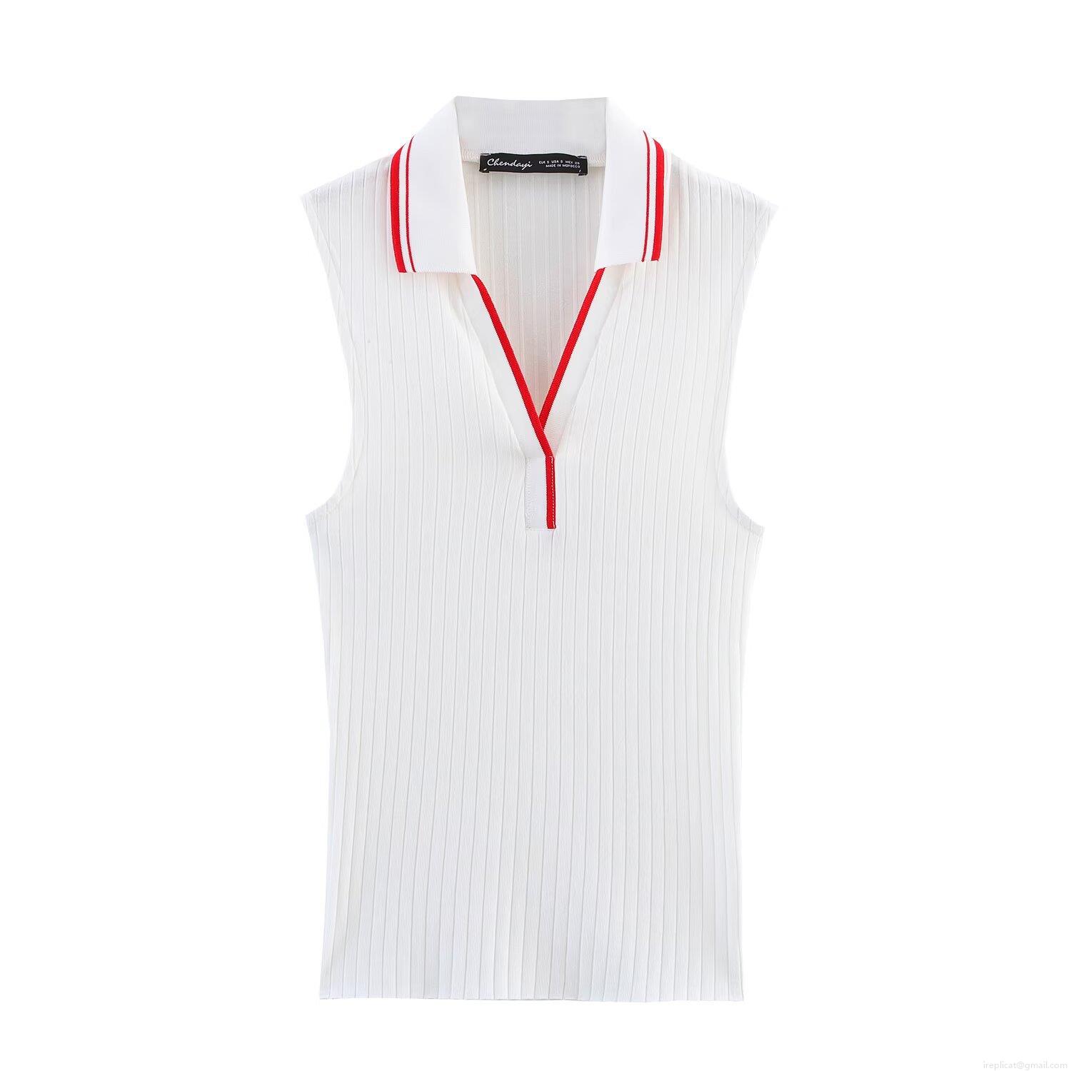 • Women's Ribbed Knitted Polo Vest Sleeveless Contrast Trim Slim Fit Crop Top Summer Preppy Style Rib Knit Tank Top for Casual Daily Wear