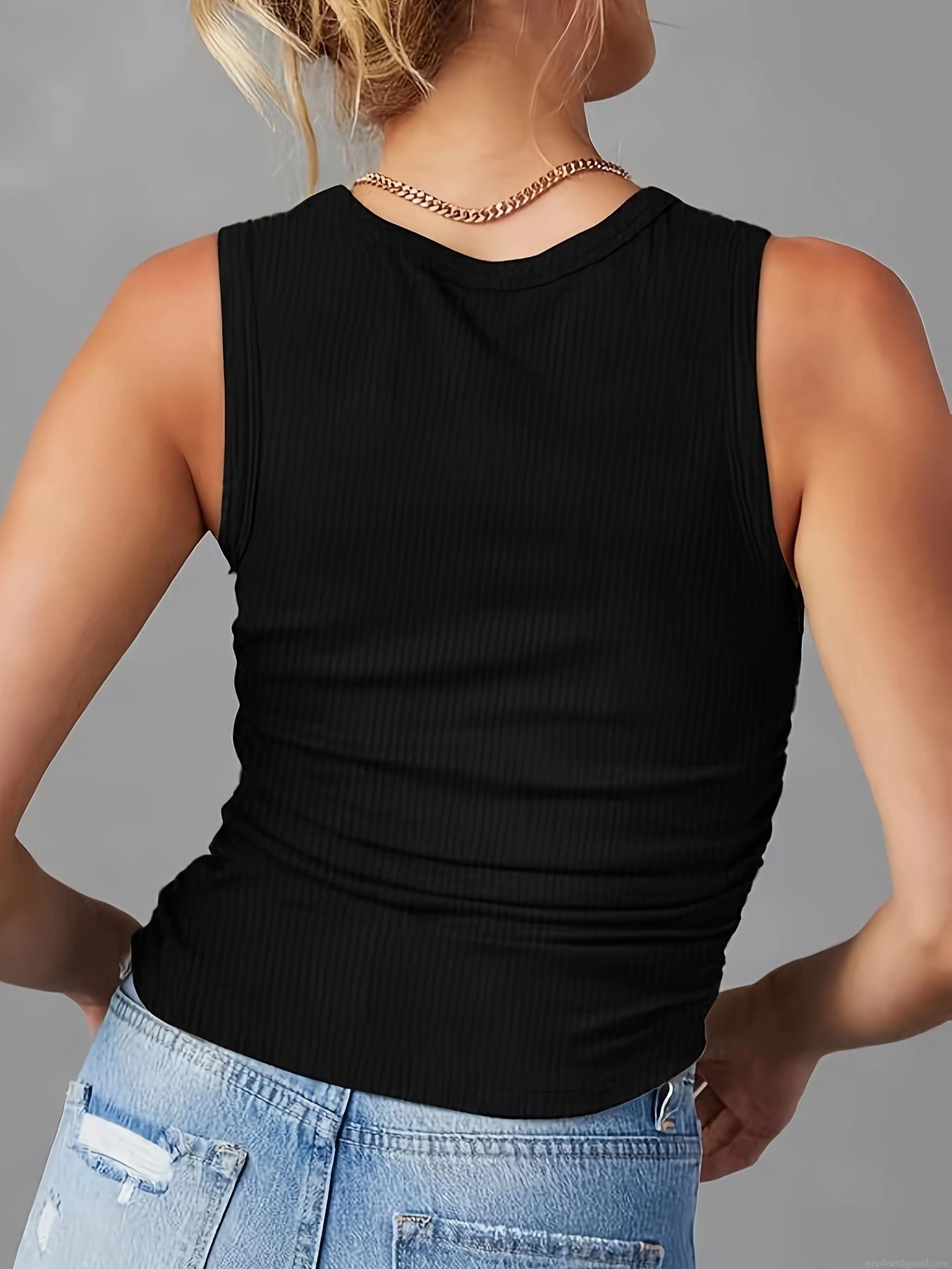 Women's Ribbed Slim Fit Camisole Tank Top Sexy Side Ruching Sleeveless Summer Casual Sports Top Basic Solid Color Vest for Women Polyester Spandex