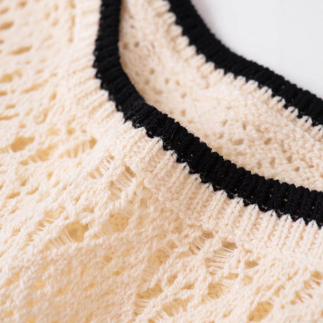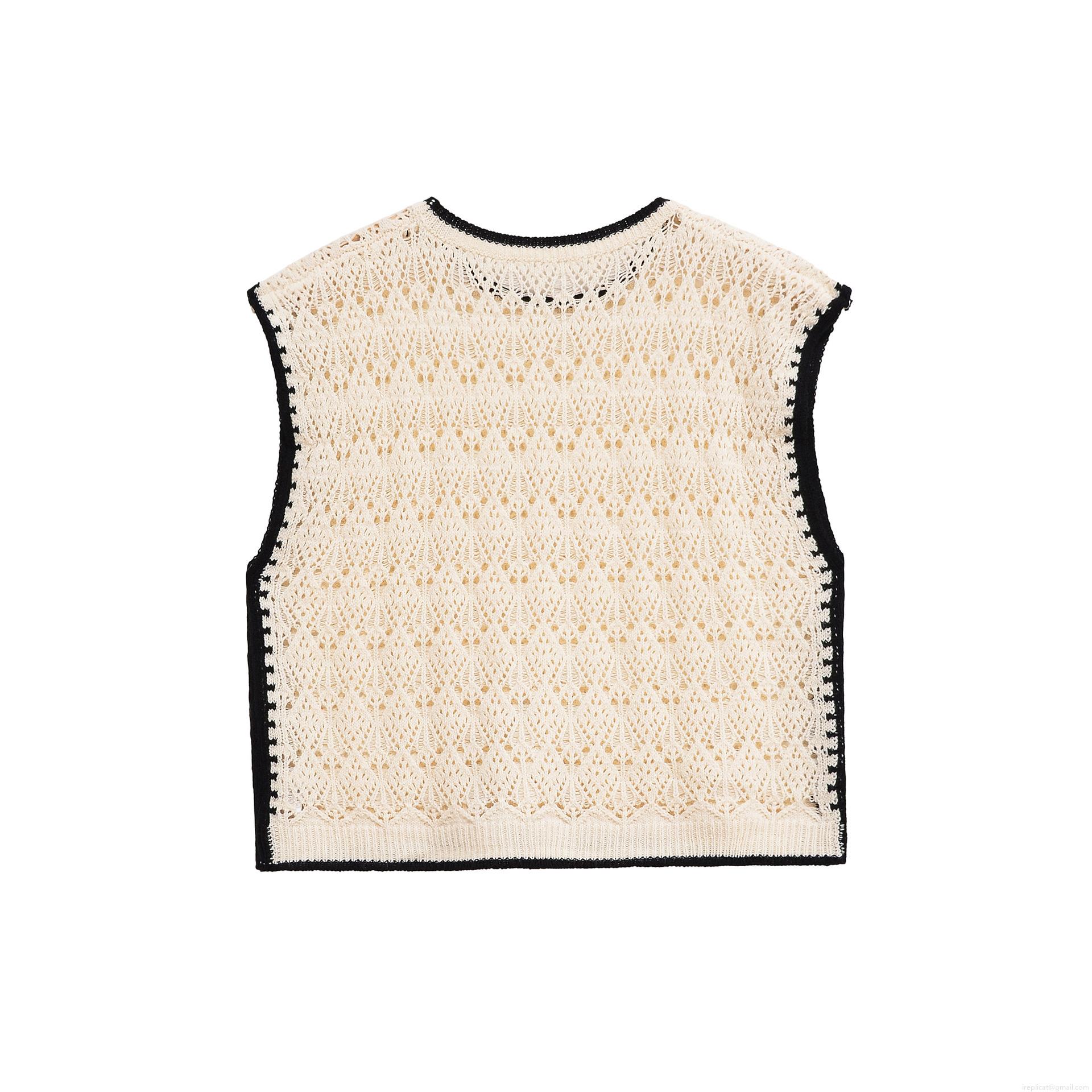 • Women's Round Neck Hollow Out Knitted Vest Contrast Trim Crochet Waistcoat Sleeveless Summer Knit Tank Top French Vintage Style Streetwear For Women