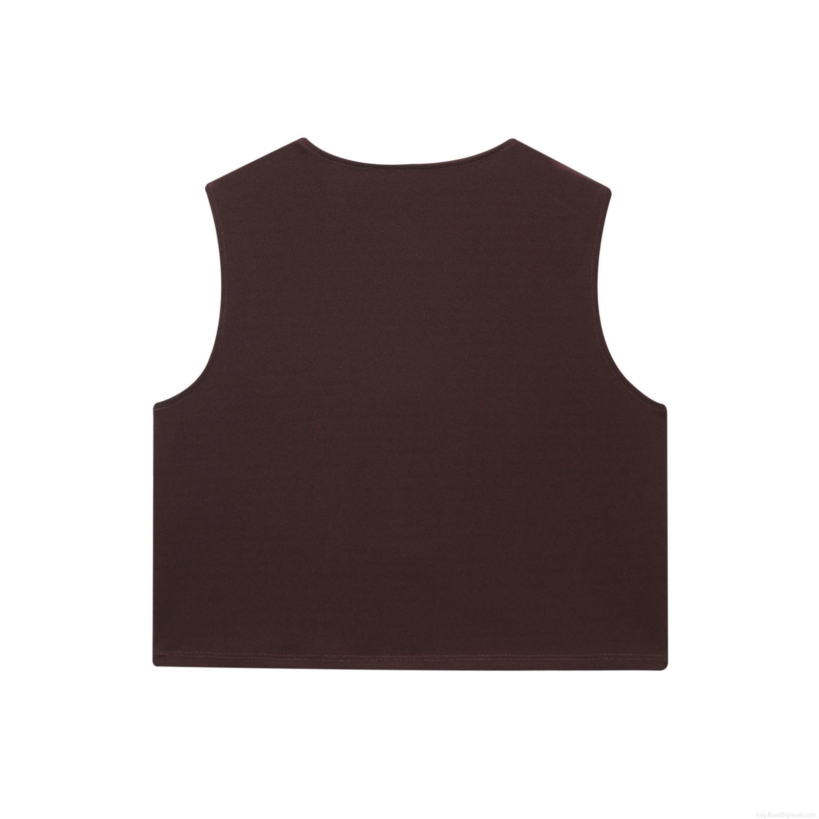 • Women's Round Neck Sleeveless Vest Top With Gold Shell Buttons European American Style Casual Short Single Breasted Waistcoat Streetwear Solid Color Fashion Outerwear