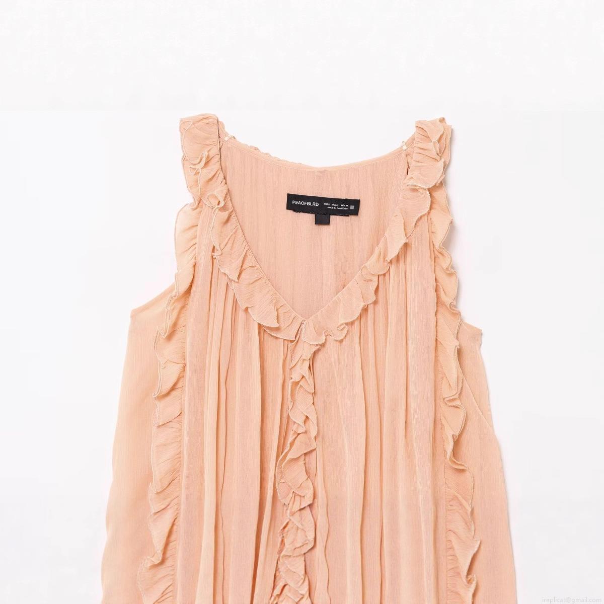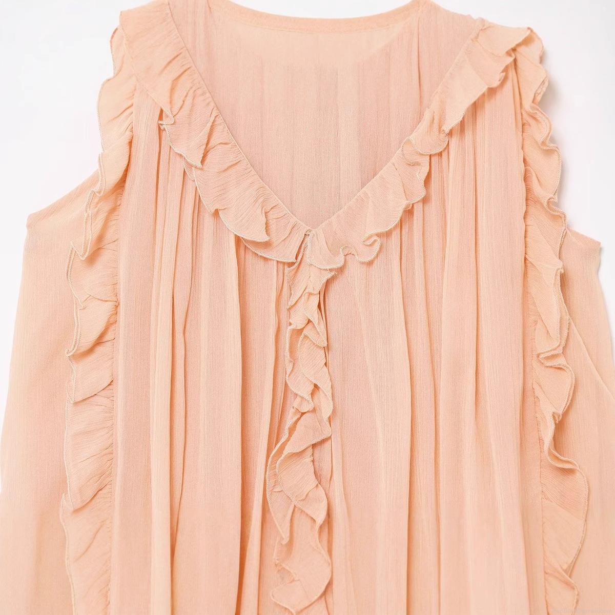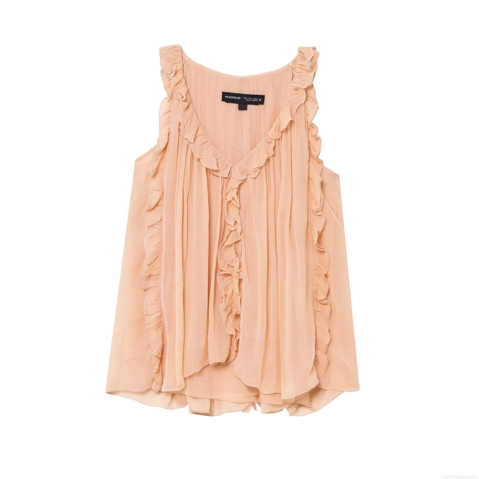 • Women's Ruffle Sleeveless Chiffon Top V Neck Tiered Pleated Tank Top Peach Pink Casual Flowy Blouse for Summer Dating Party Lady