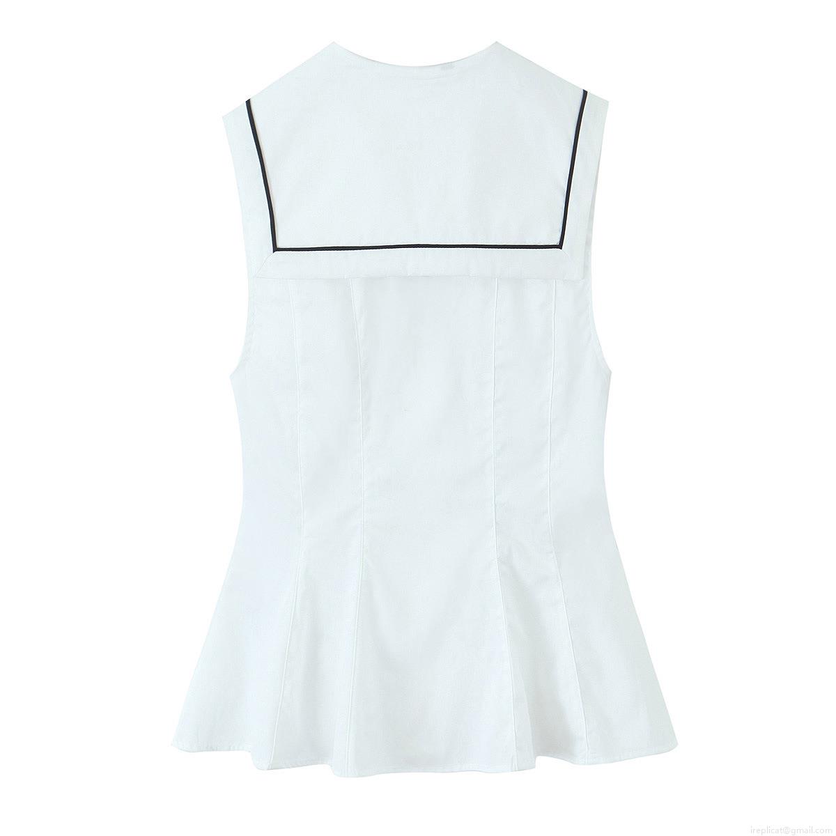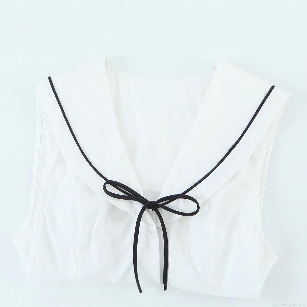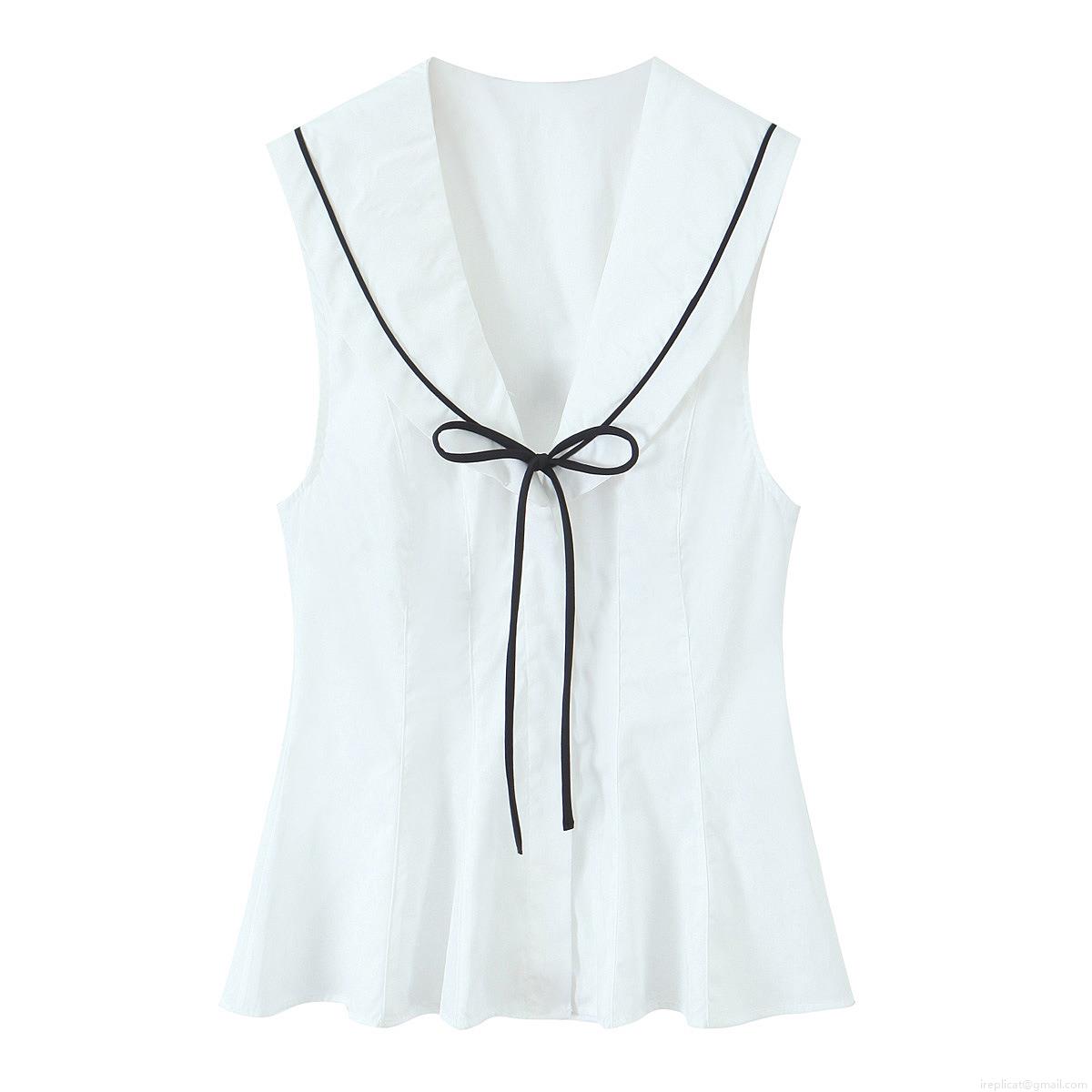 • Women's Sailor Collar Sleeveless Tank Top Contrast Trim Slim Fit Polyester Vest With Bow Tie Preppy Style Casual Summer Blouse For Women