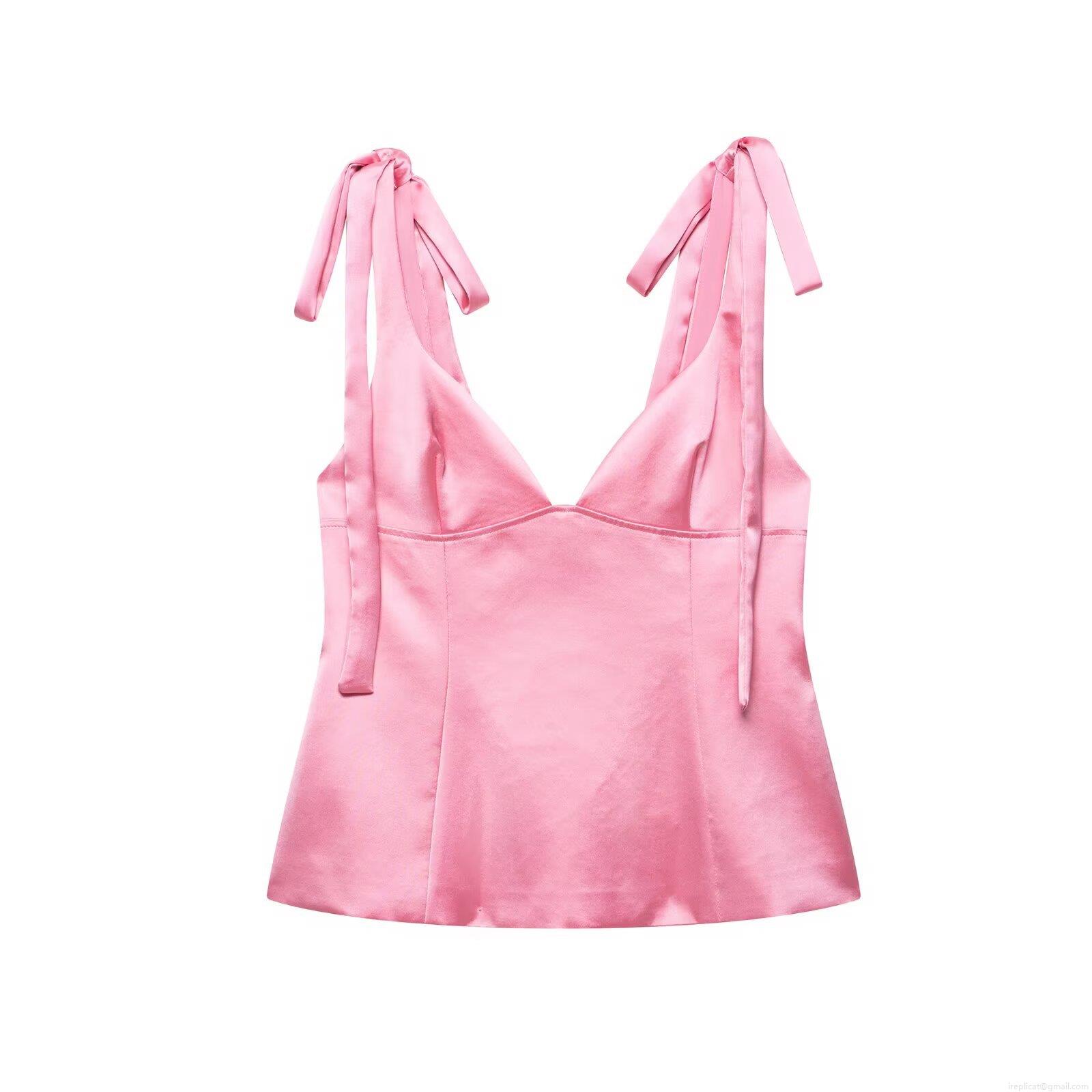 • Women's Satin Cami Top V-Neck Bow Tie Shoulder Straps Solid Color Sleeveless Vest For Summer Daily Streetwear Fashion Slim Fit Tank Top