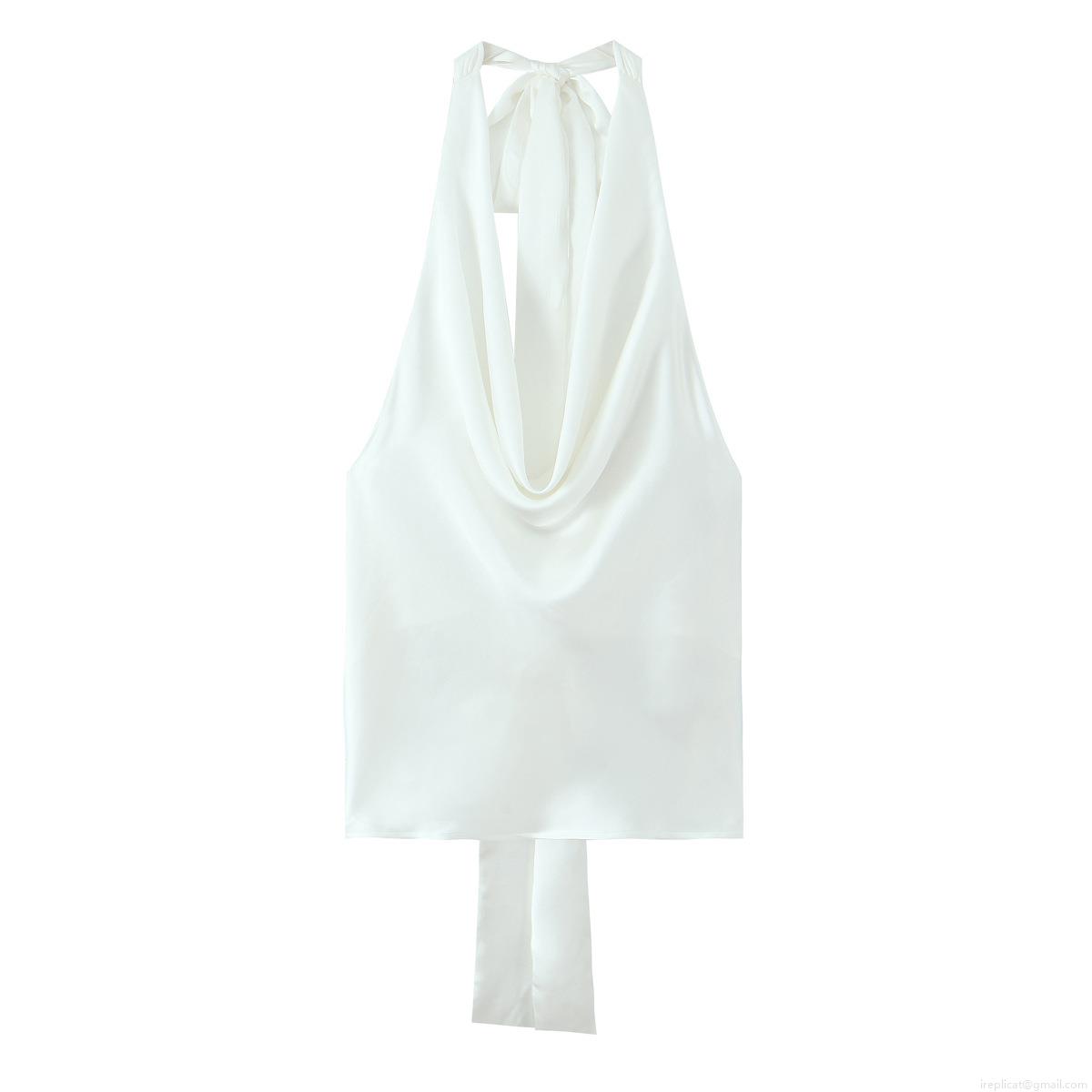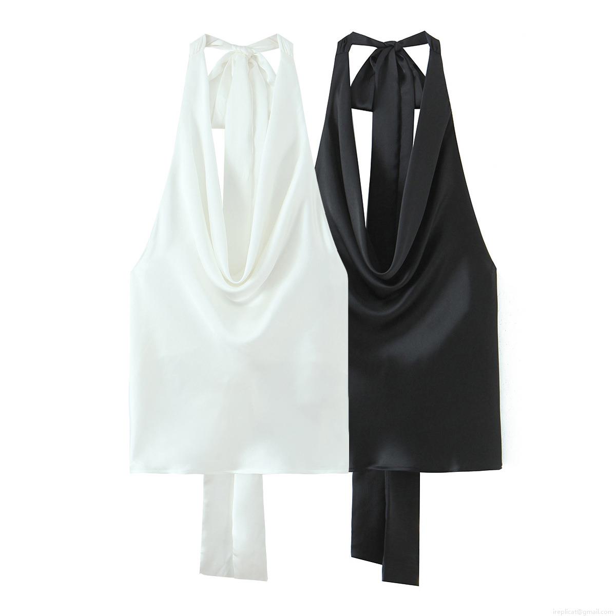 • Women's Satin Halter Neck Tank Top Sexy Backless Sleeveless Crop Top With Tie Back Bow Elegant Solid Color Camisole For Party Club Summer Dating Streetwear