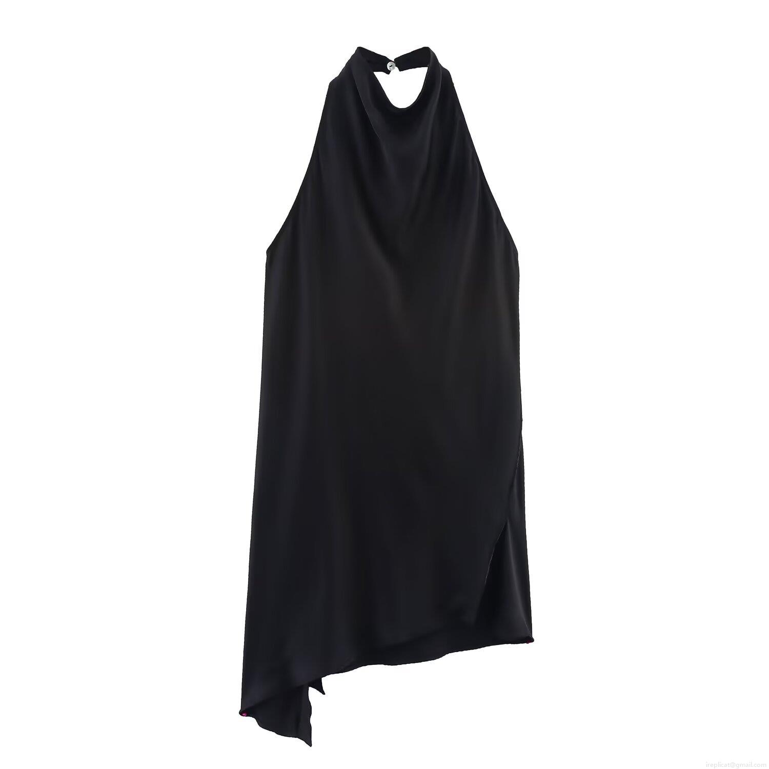 • Women's Satin Halter Neck Top Elegant Sleeveless Backless Silk Texture Asymmetrical Hem Camisole Blouse For Party Clubwear