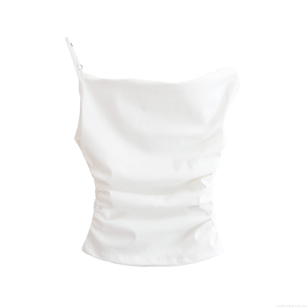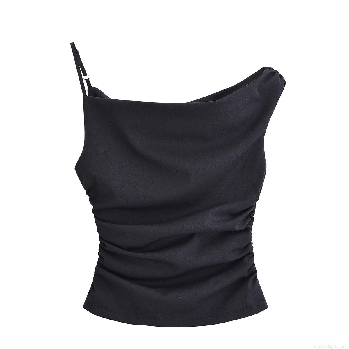• Women's Sexy Asymmetric Draped One Shoulder Cami Top Solid Color Ruched Polyester Slim Fit Tank Top for Party Club Dating Summer Streetwear
