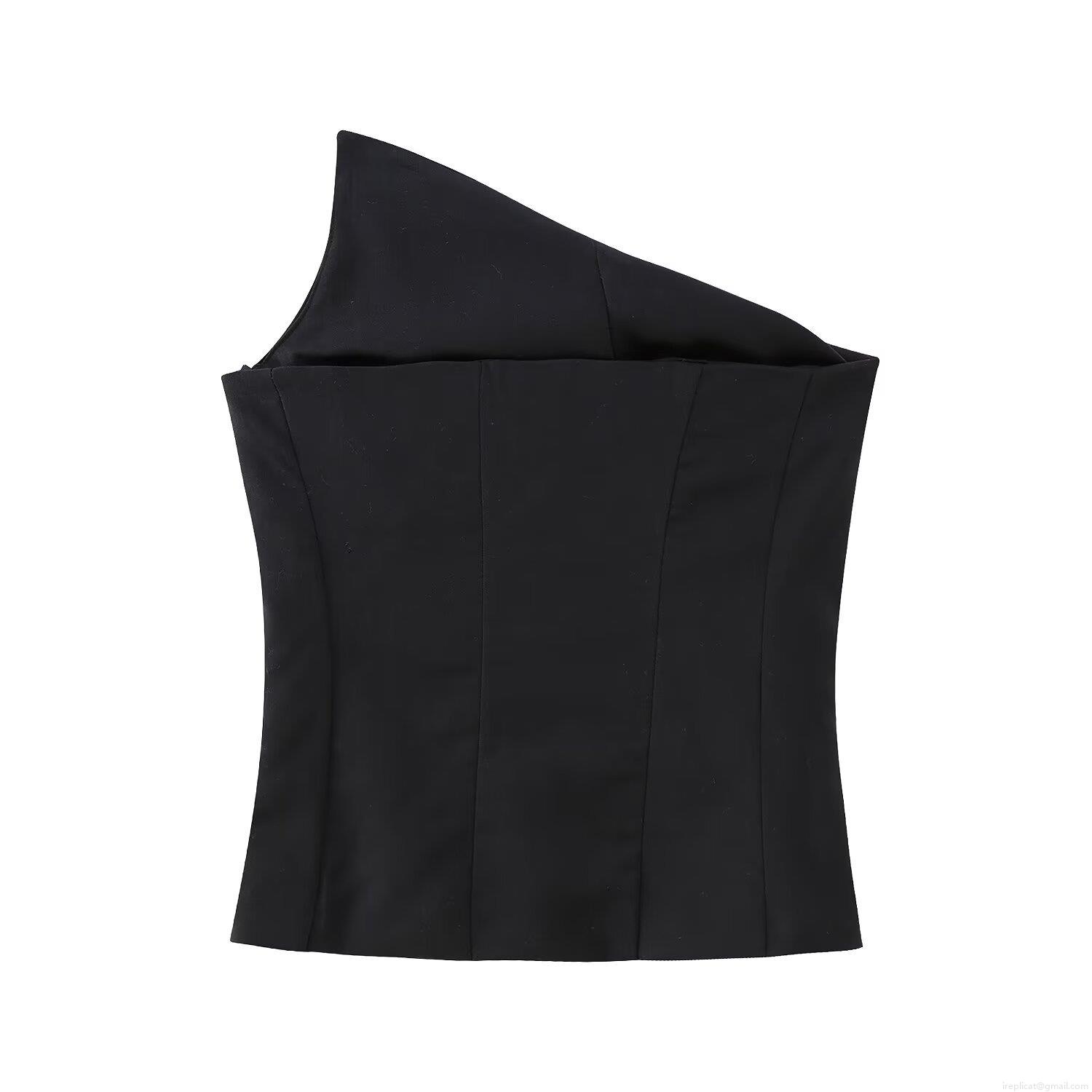 • Women's Sexy Asymmetric One Shoulder Corset Top Slim Fit Polyester Solid Black Crop Top For Party Club Night Out Elegant Bodycon Sleeveless Tank Top