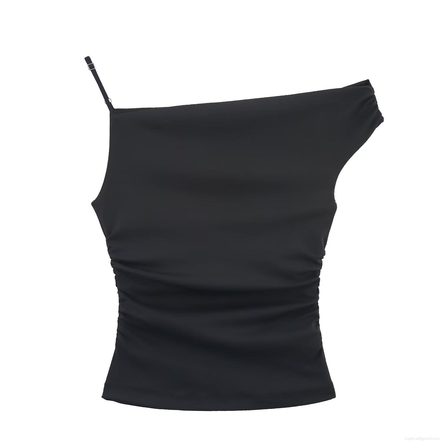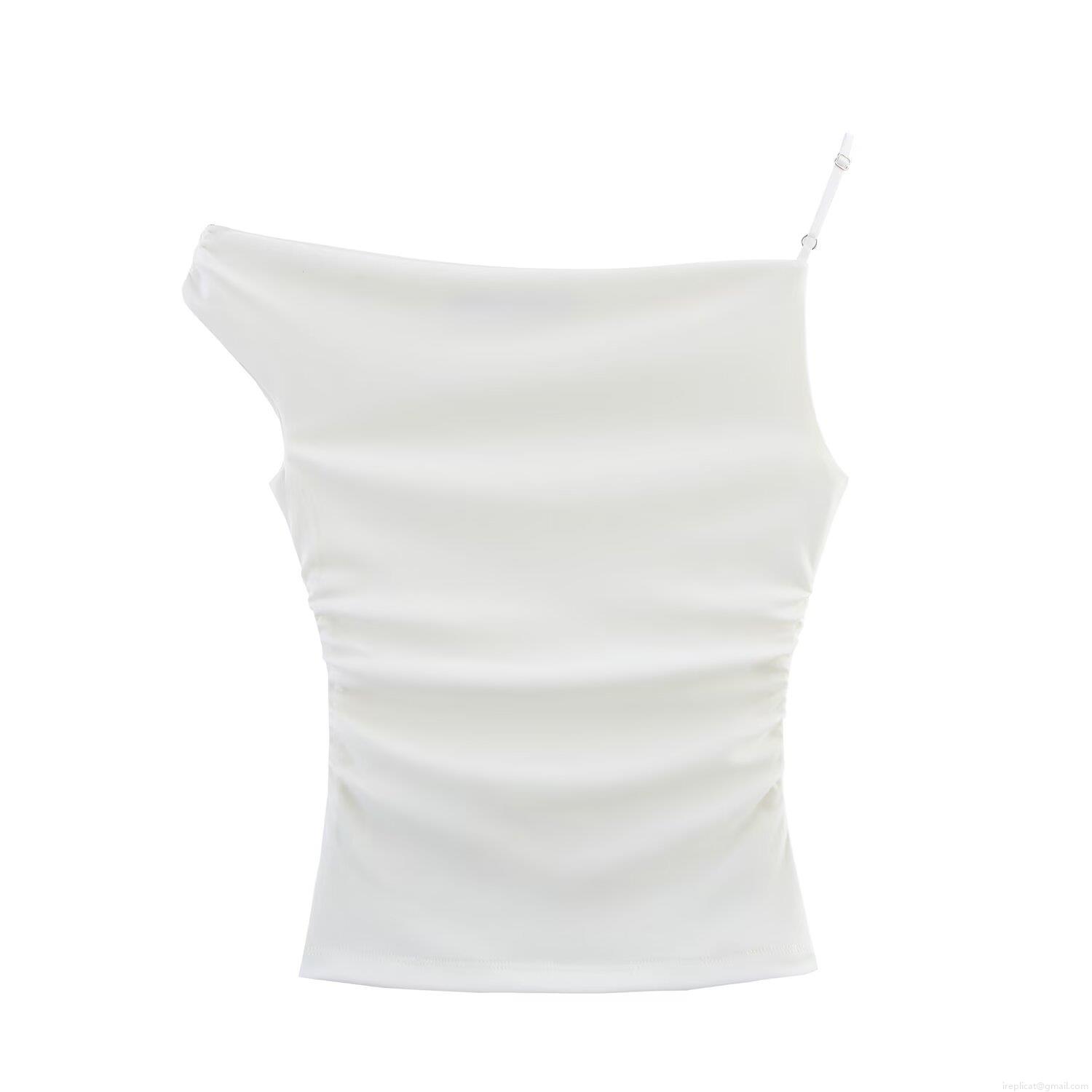 • Women's Sexy Asymmetric One Shoulder Ruched Tank Top Slim Fit Solid Color Sleeveless Polyester Short Vest For Party Clubwear