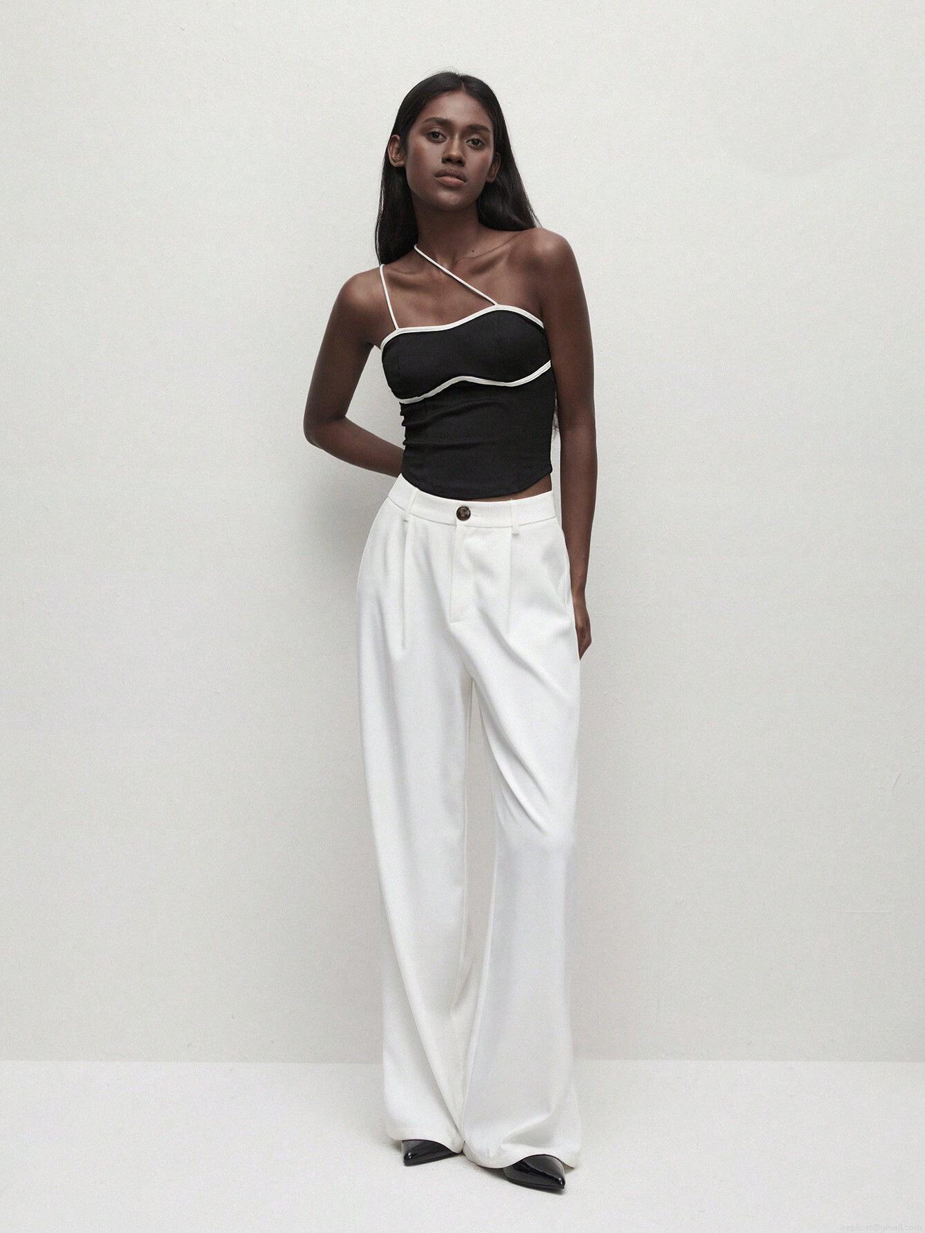 Solid Color, Color Blocking, Backless, Asymmetrical Design, Rough Texture, Contrasting Color Outline