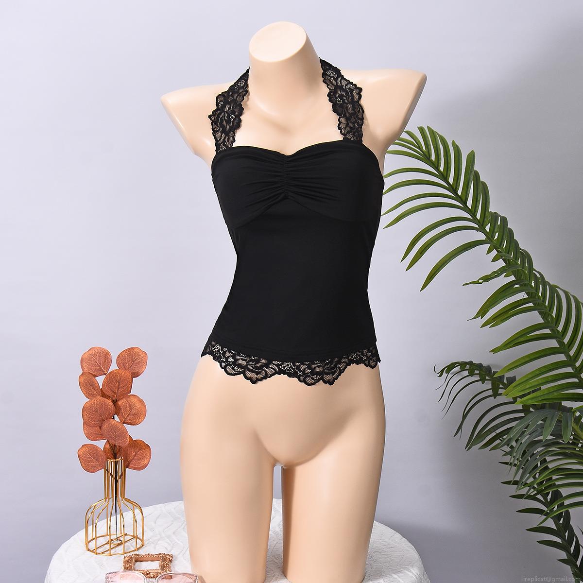 • Women's Sexy Backless Halter Neck Crop Top With Lace Trim Ruched Knit Polyester Spandex Sleeveless Tank Top For Summer Party Clubwear