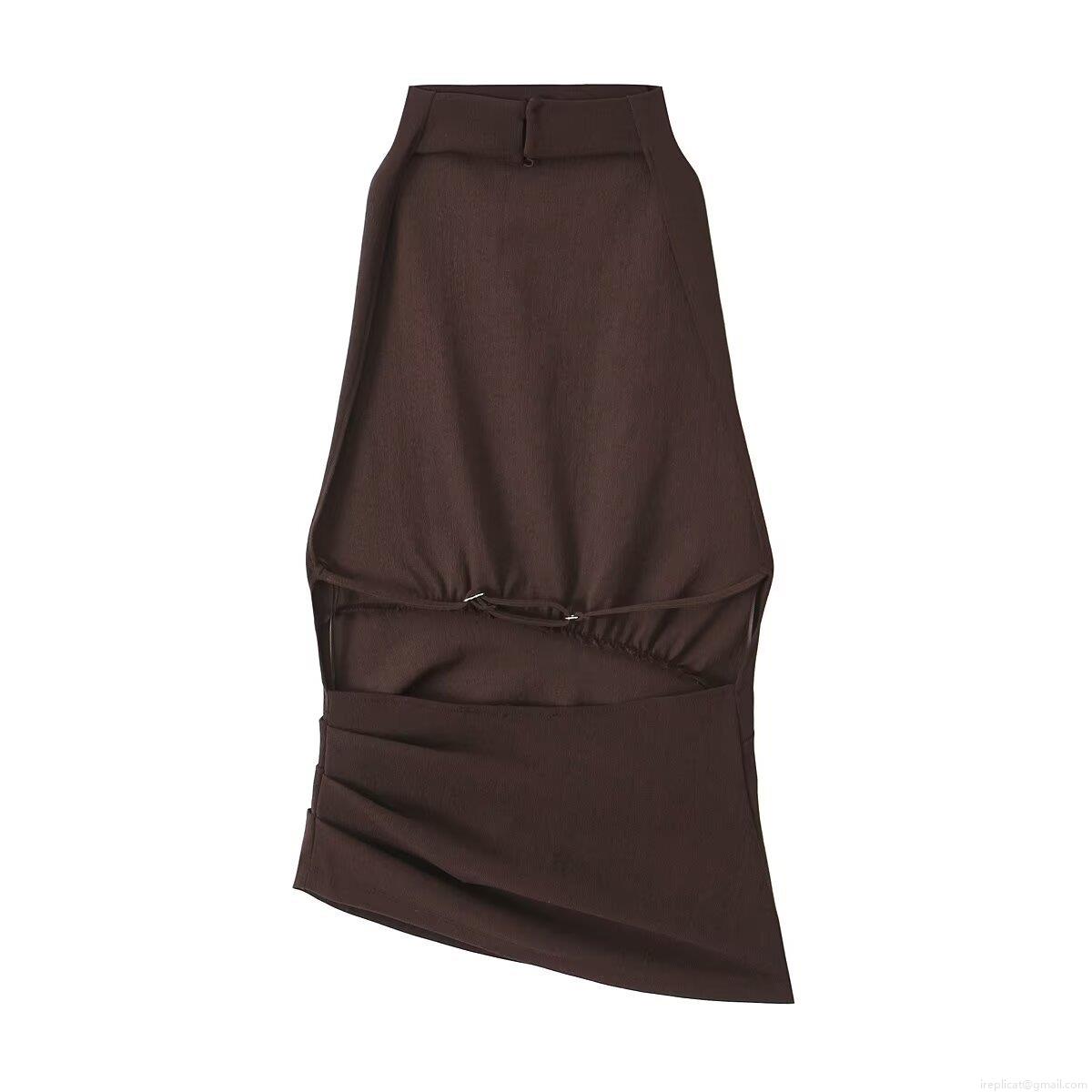 Women's Sexy Backless Halter Neck Sleeveless Top Ruched Slim Fit Polyester Streetwear Camisole Solid Color Dark Brown Spring Fashion Tank Top