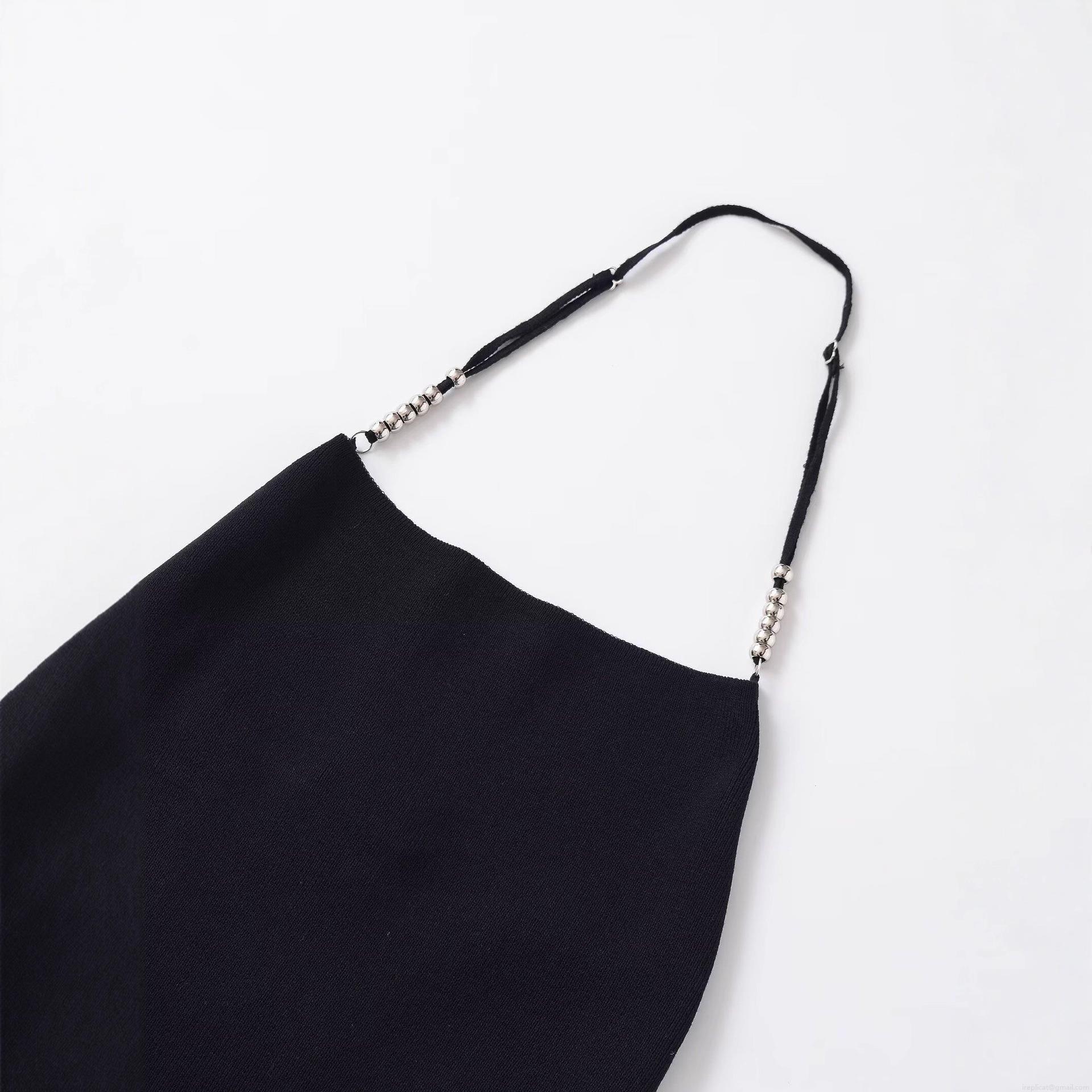 Solid Color, Backless, Metal Ball Decoration, Knitted Texture, Thin Shoulder Straps