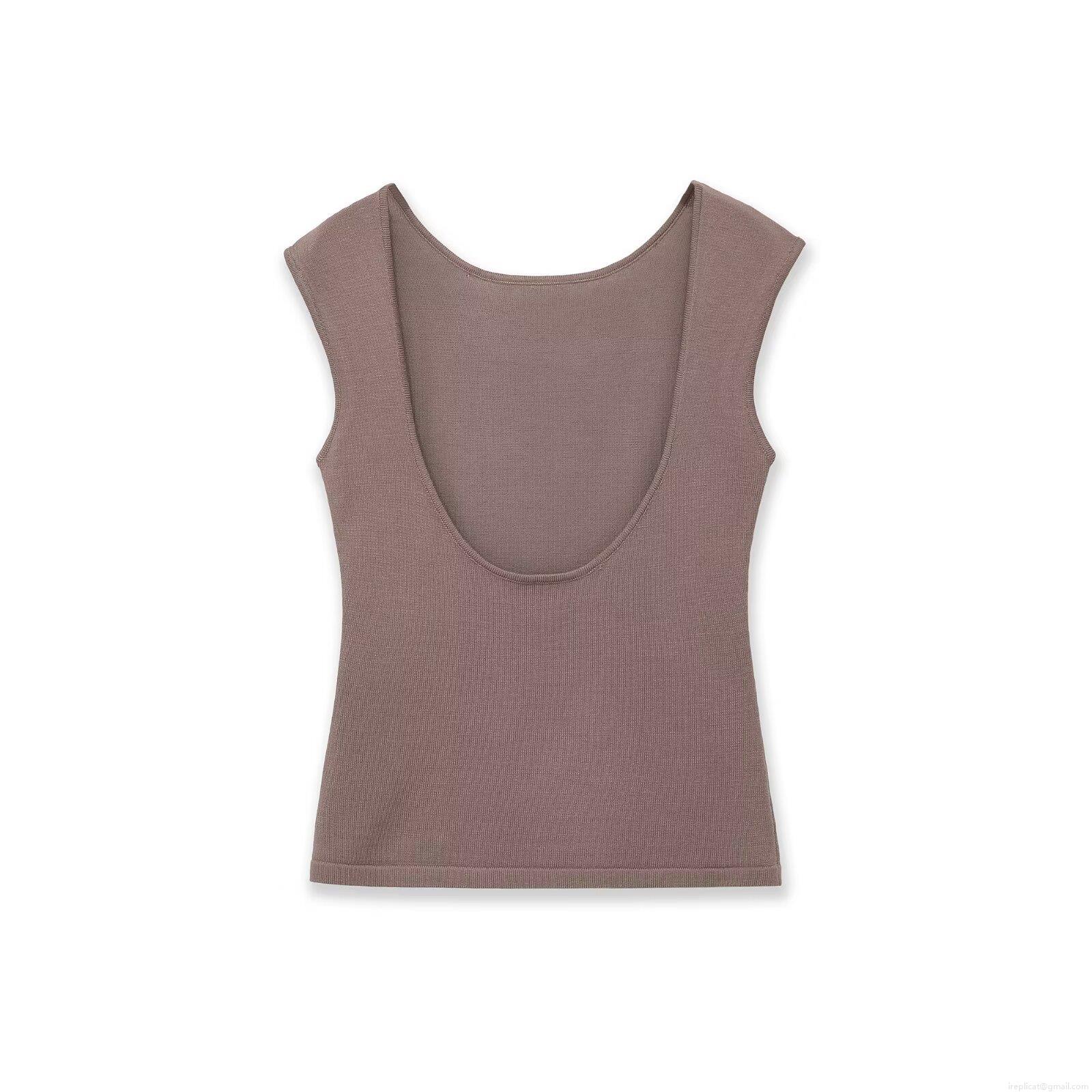 • Women's Sexy Backless Knitted Tank Top Sleeveless Round Neck Ribbed Slim Fit Camisole Vest For Daily Party Club Ladies Polyester Summer Tops
